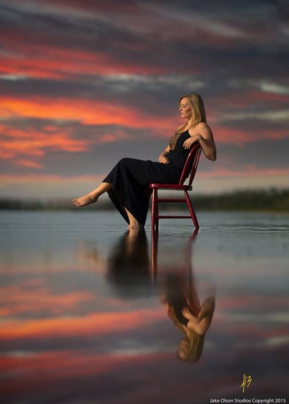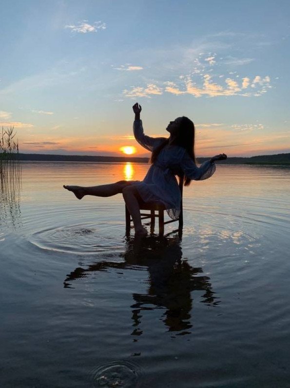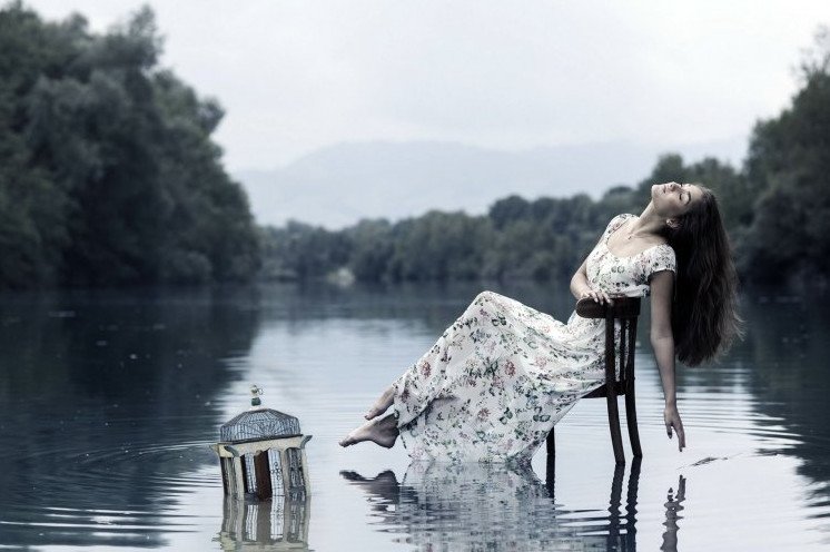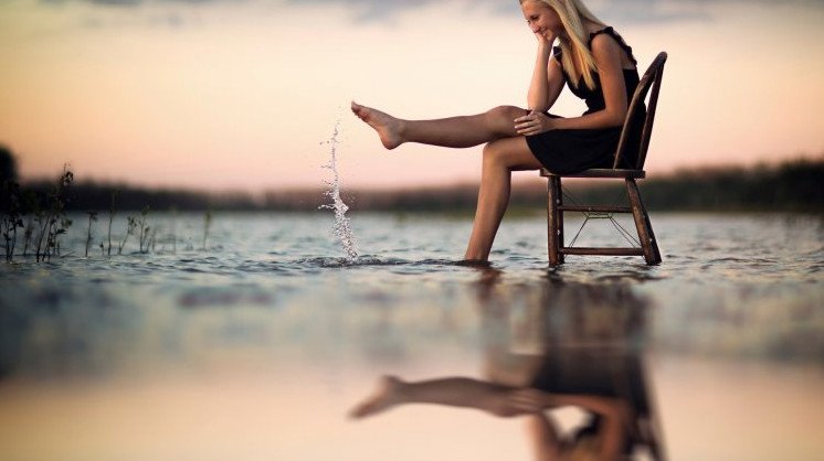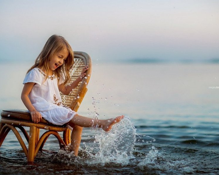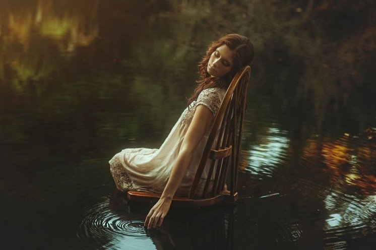 Фотосессия со стулом в воде.