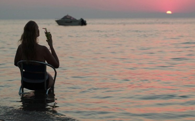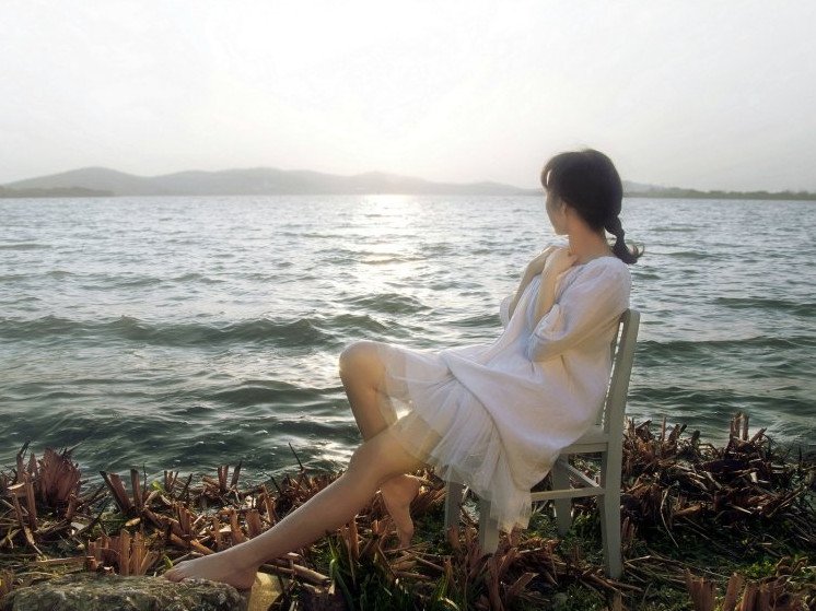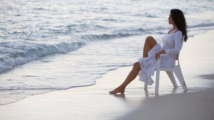 Девушка на стуле в море.
