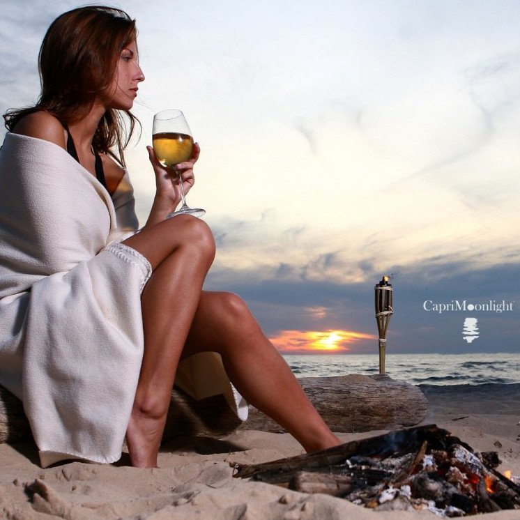 Фотосессия у моря с бокалом.