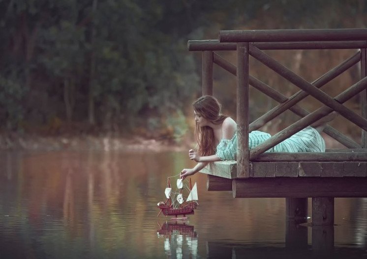 Девушка с картонным корабликом.