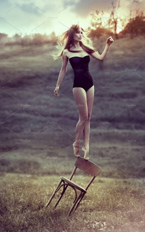 Фотосессия со стулом в поле.