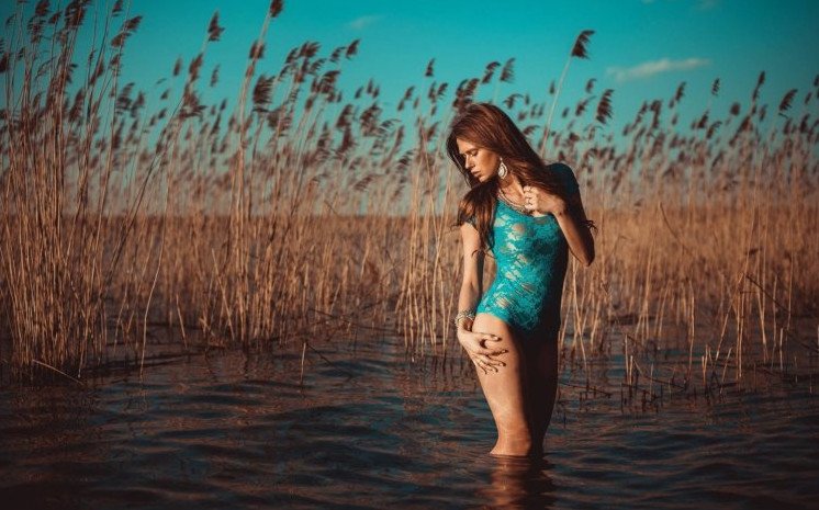 Фотосессия в озере в прекрасное платье.