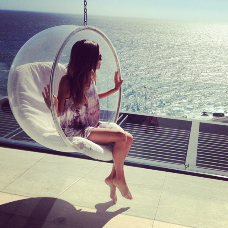 Девушка в купальнике на стуле.