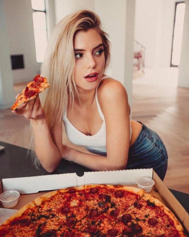 Shay Mitchell с пиццей.