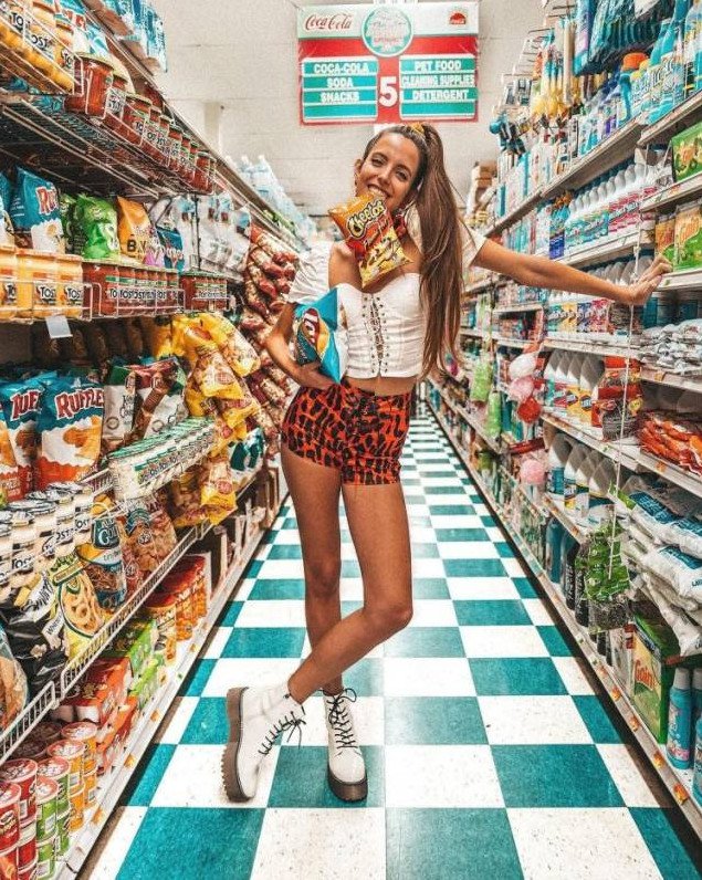 Девушка в продуктовом магазине.