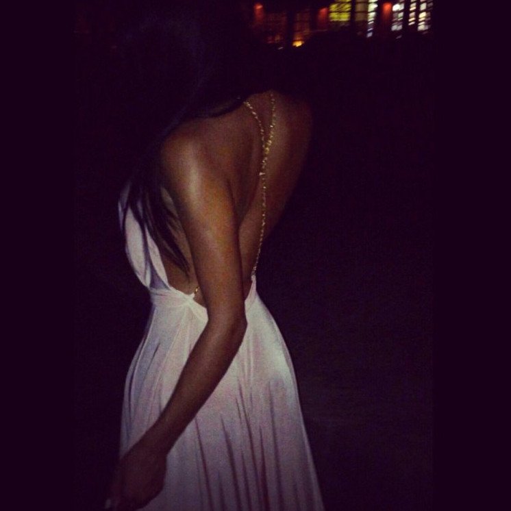 Эротика с брюнеткой в черном прекрасное платье со спины.