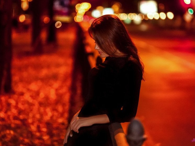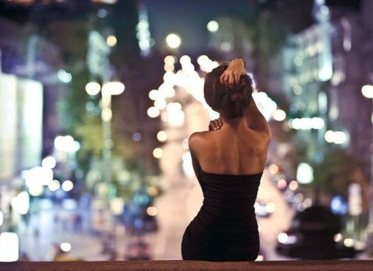 Девушка со спины ночью.