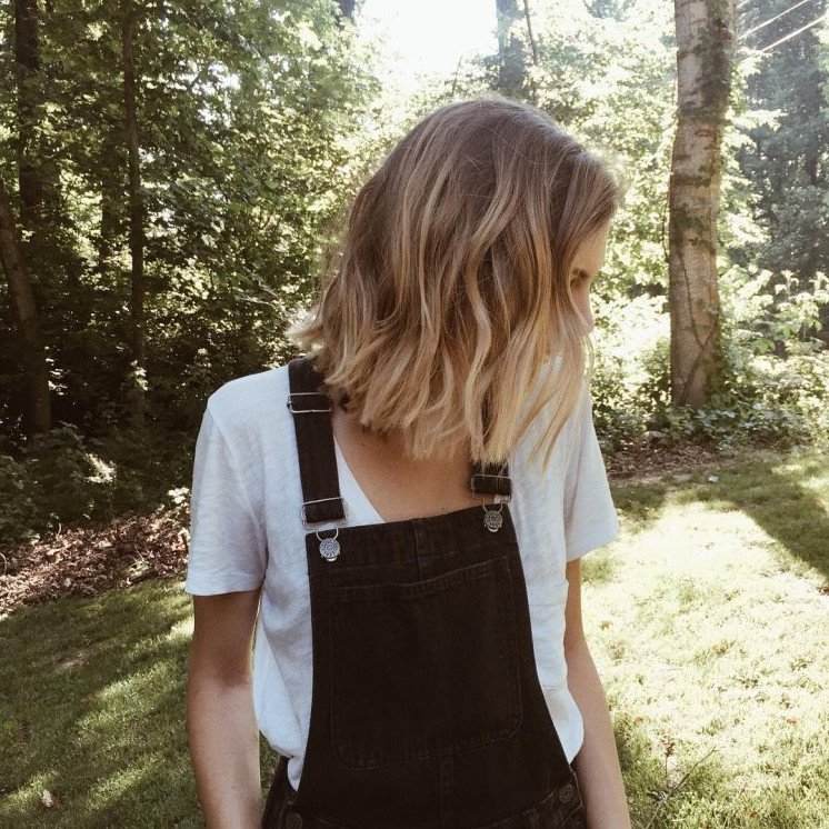 Девушка с каре со спины русые волосы.