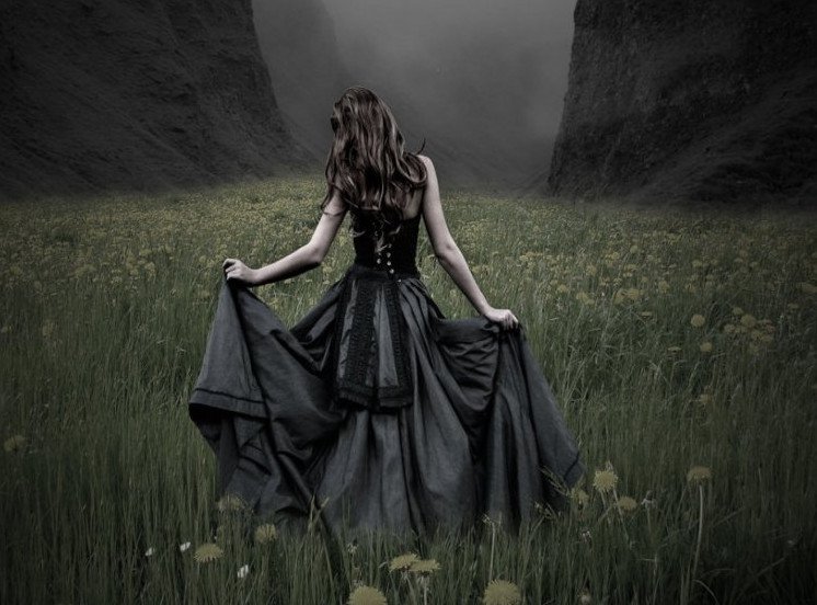 Девушка в черном прекрасное платье.