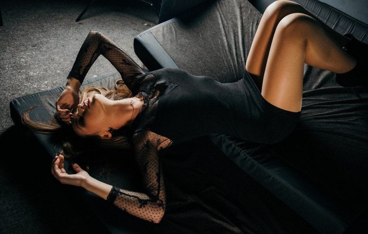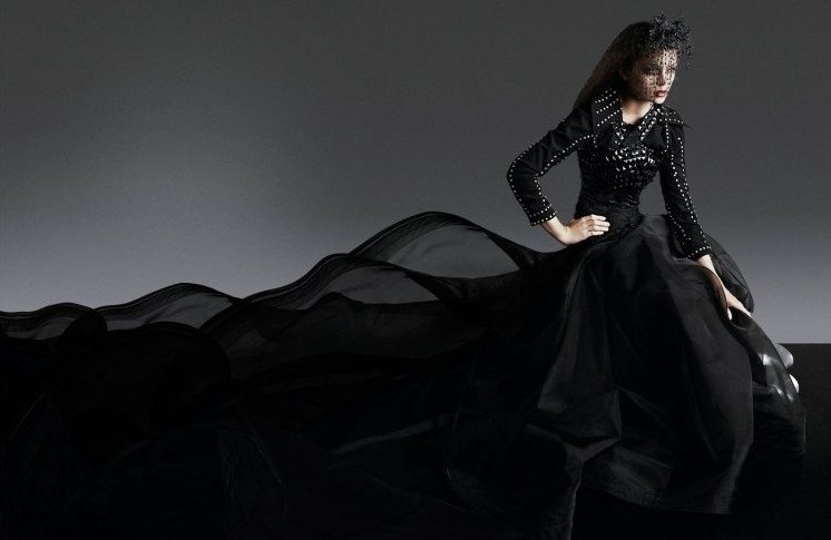 Фотосессия в черном прекрасное платье.