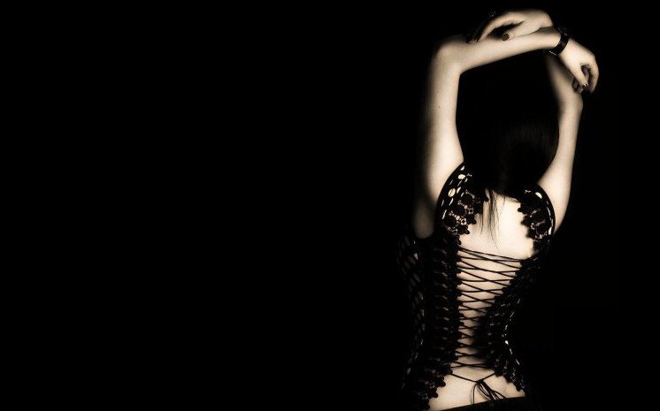 Красивая девушка в чудесном белье на черном фоне.