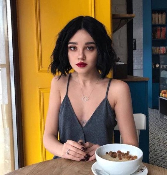 Девушка с черным каре.