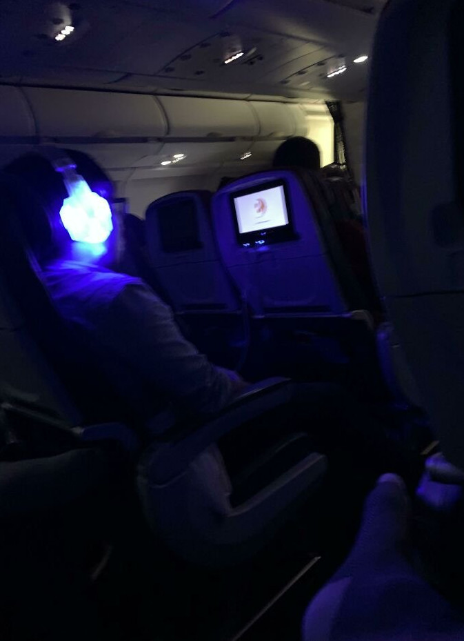 Включает видео во время перелета, когда все спят