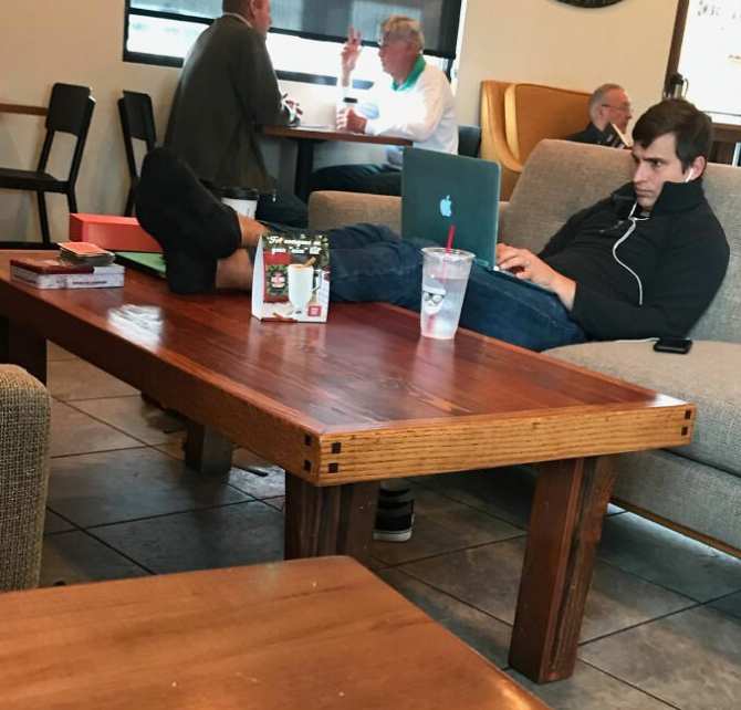 В кофейне ноги на стол!