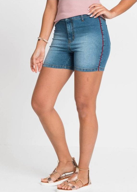 Недлинные джинсовые шорты.