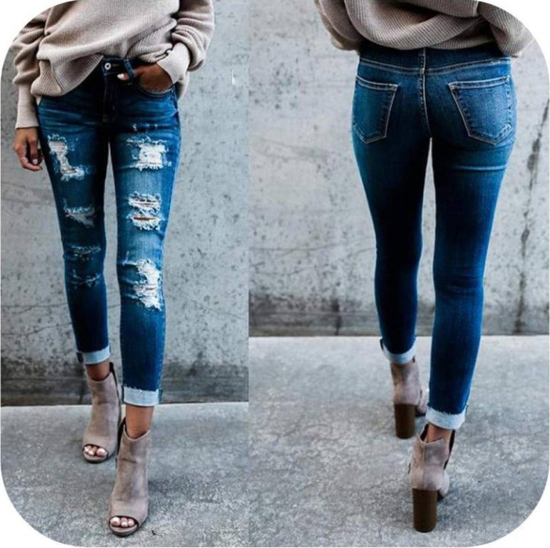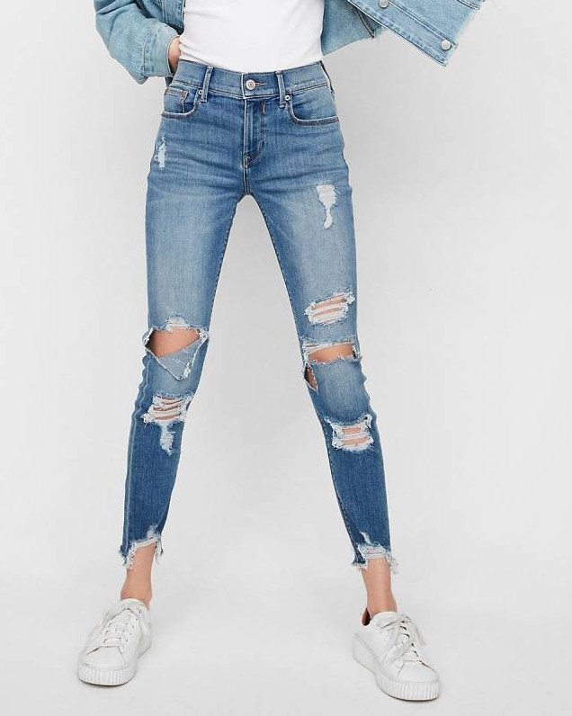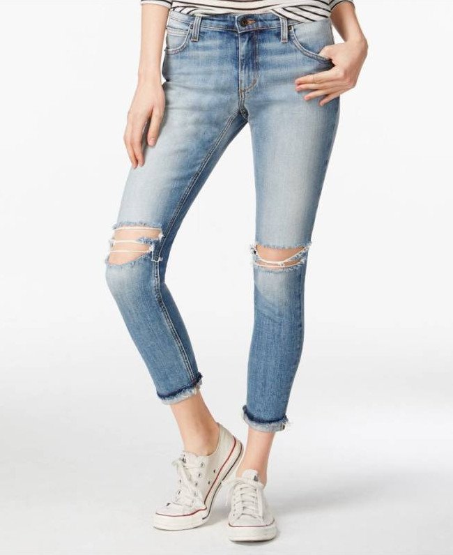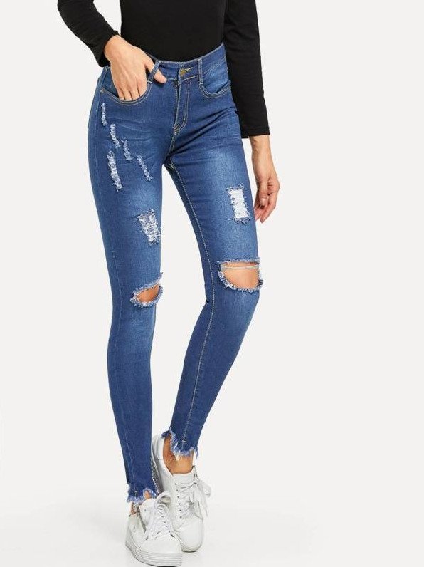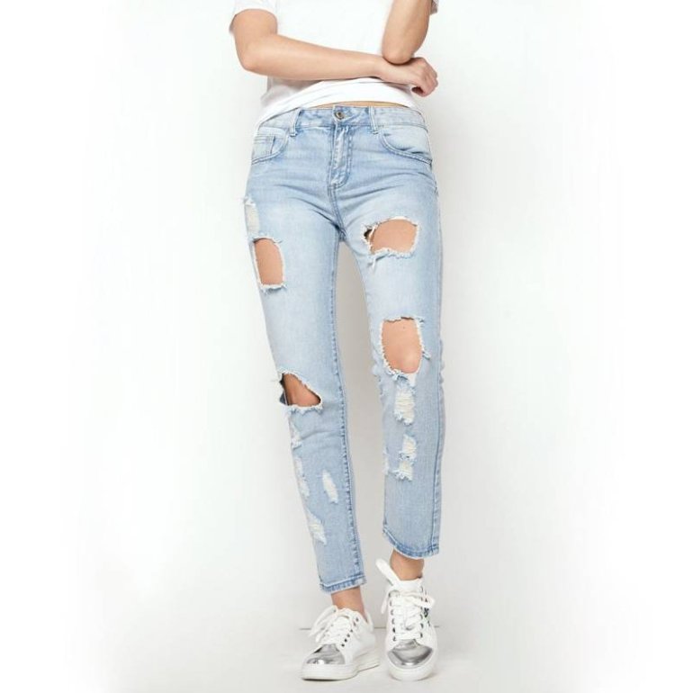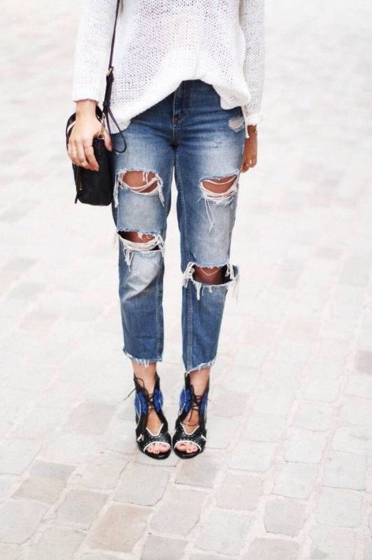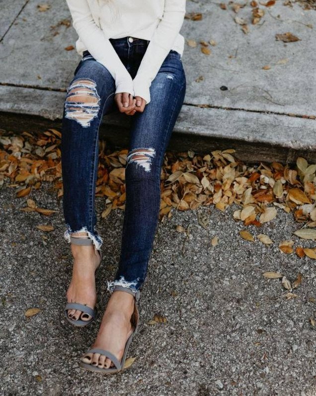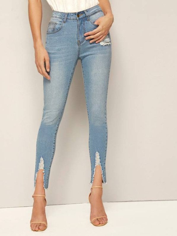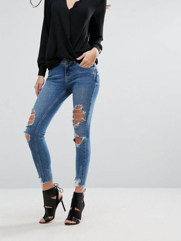 Сероватые скинни джинсы с рваным низом Ривер Исланд.