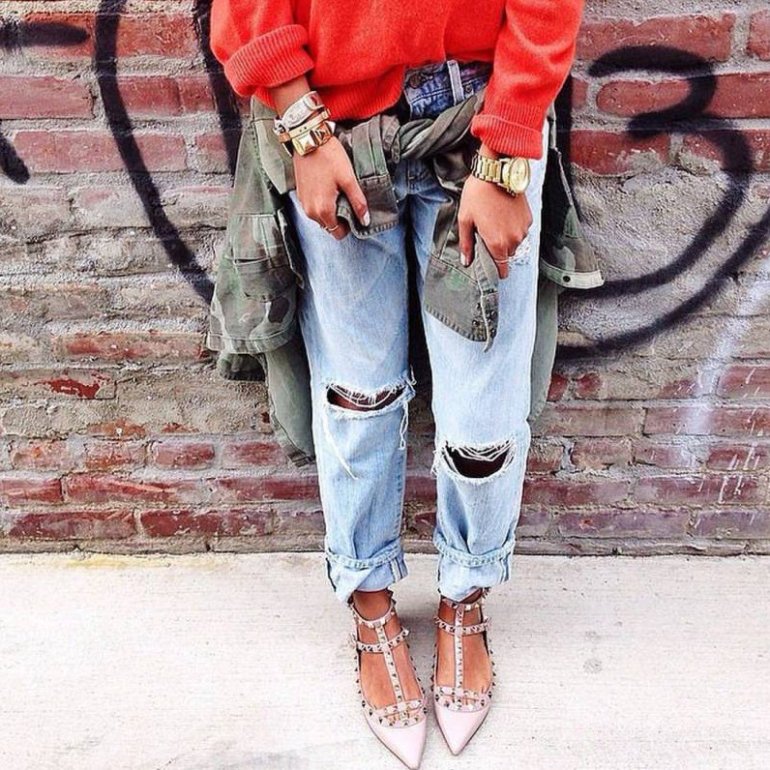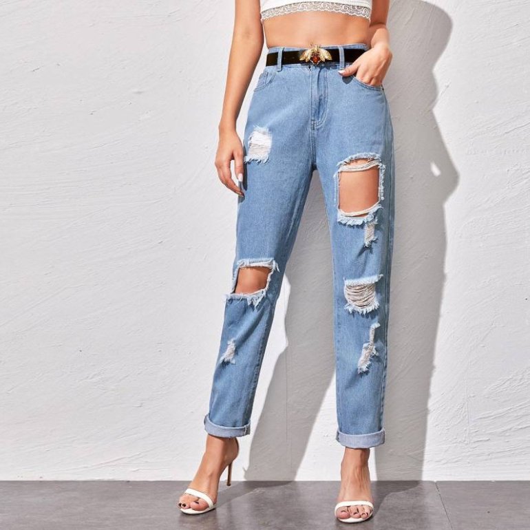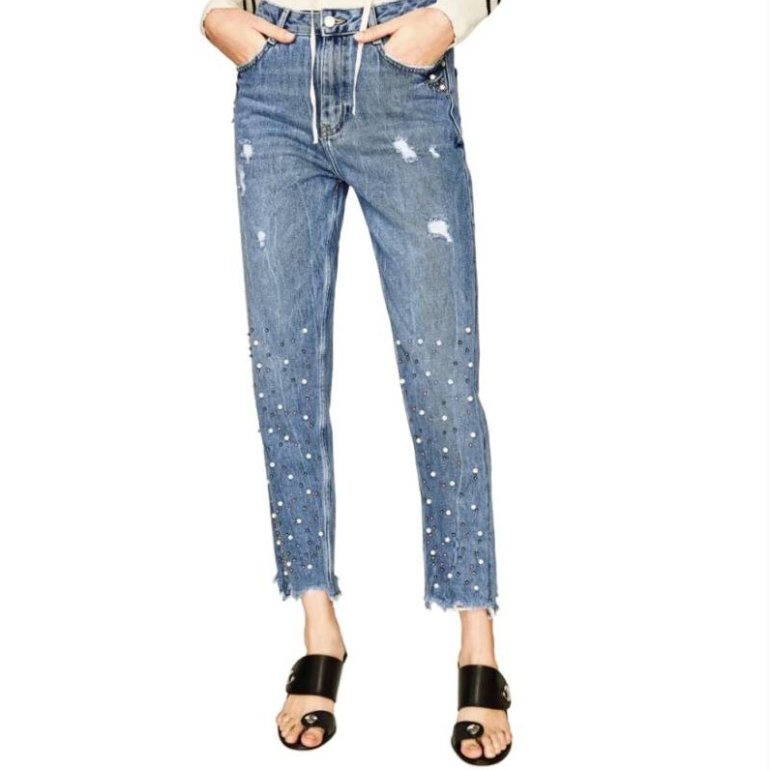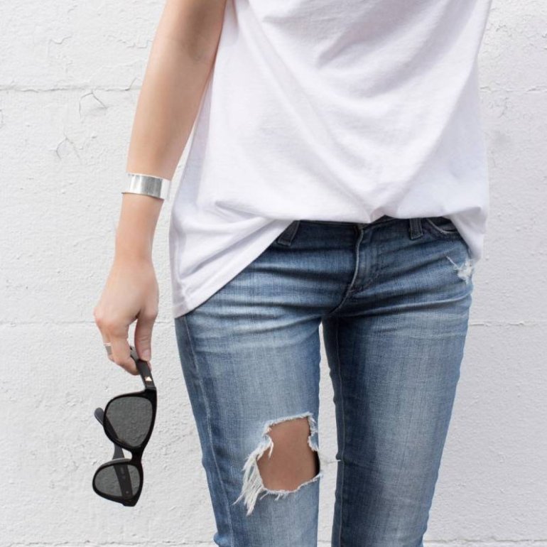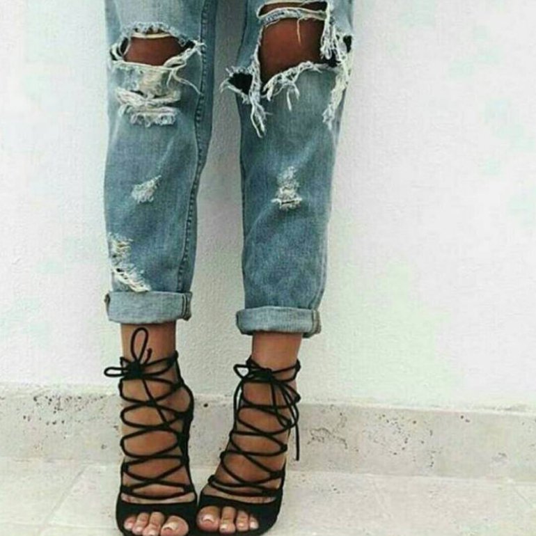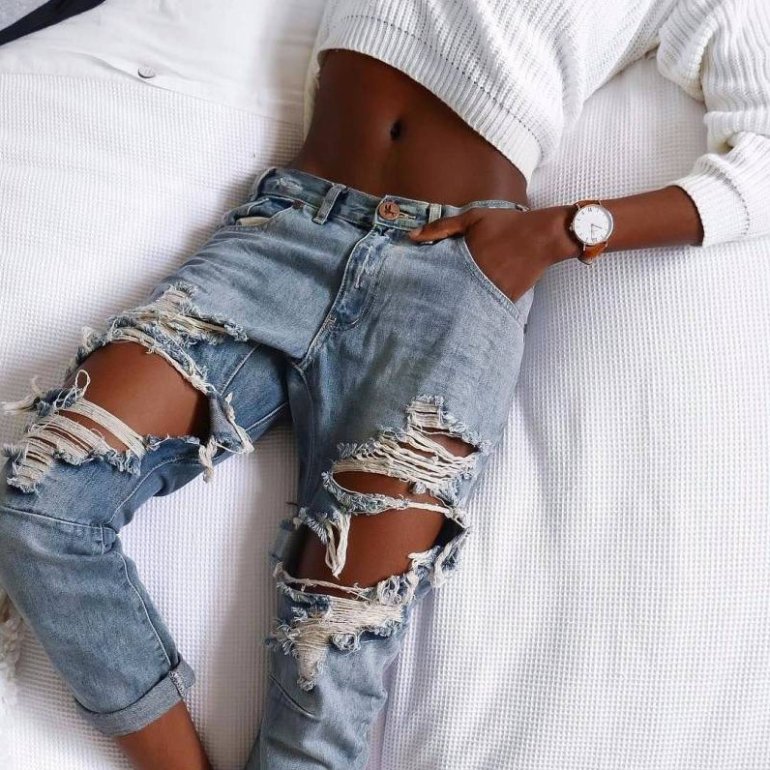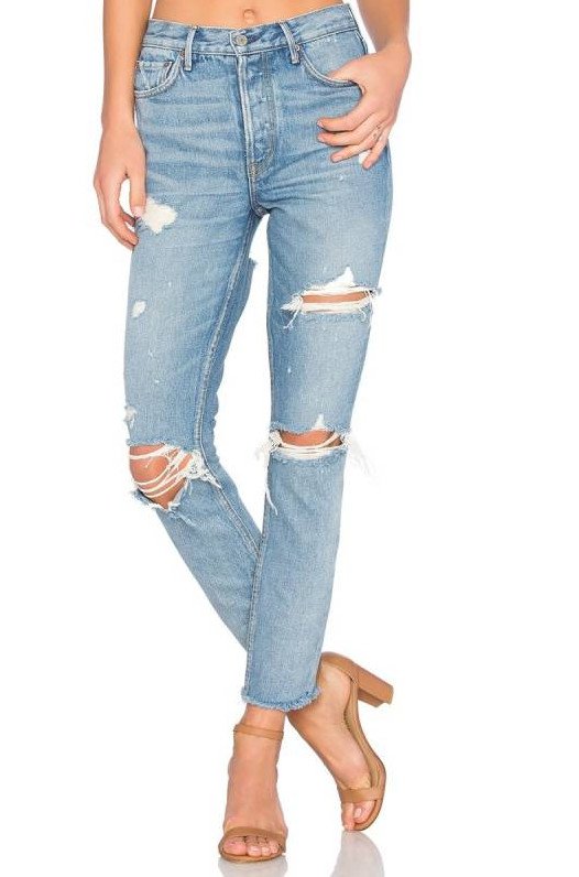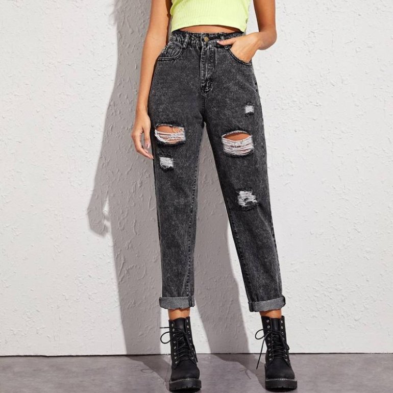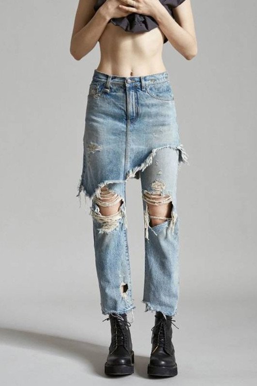 Сероватые скинни джинсы с рваным низом Ривер Исланд.