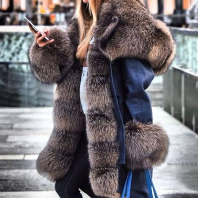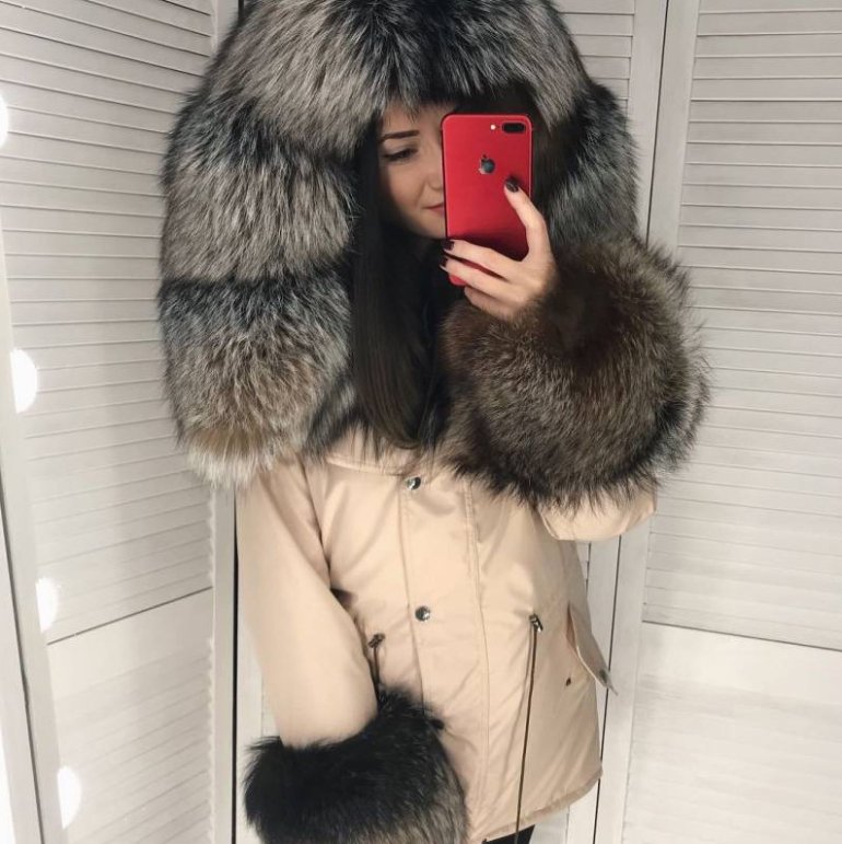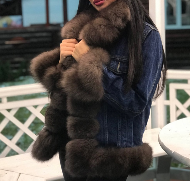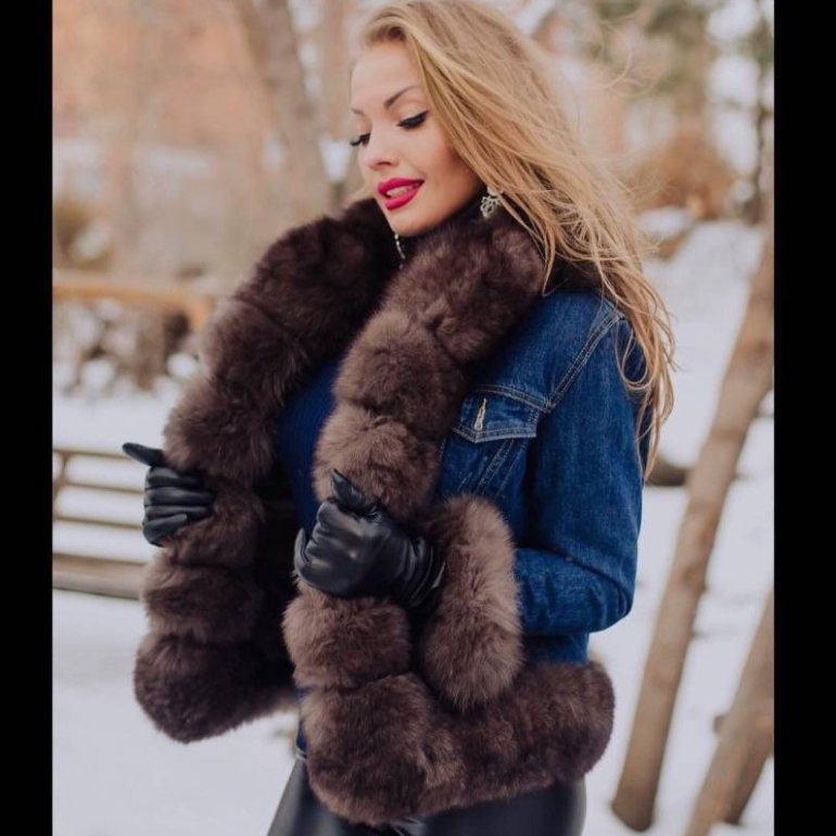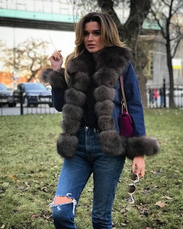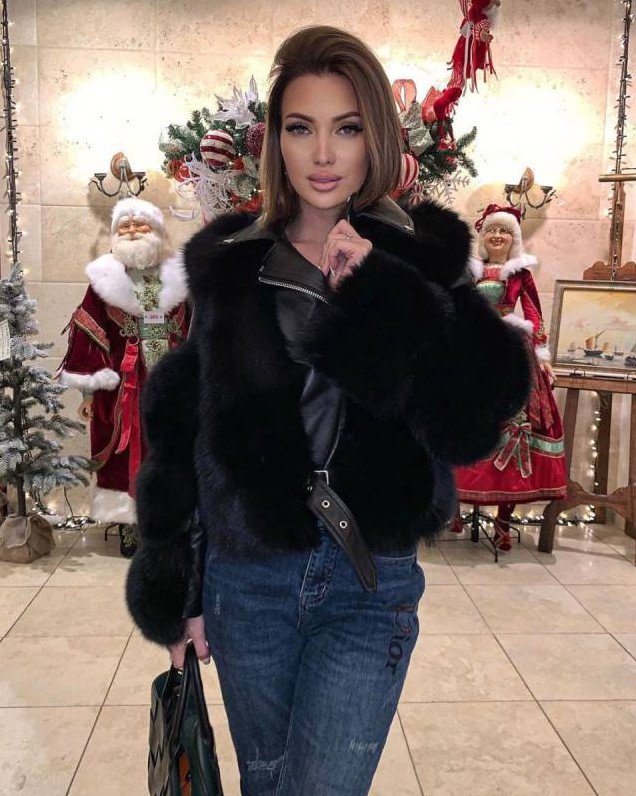 Ухоженные девушки Инстаграм в меховой жилетке.