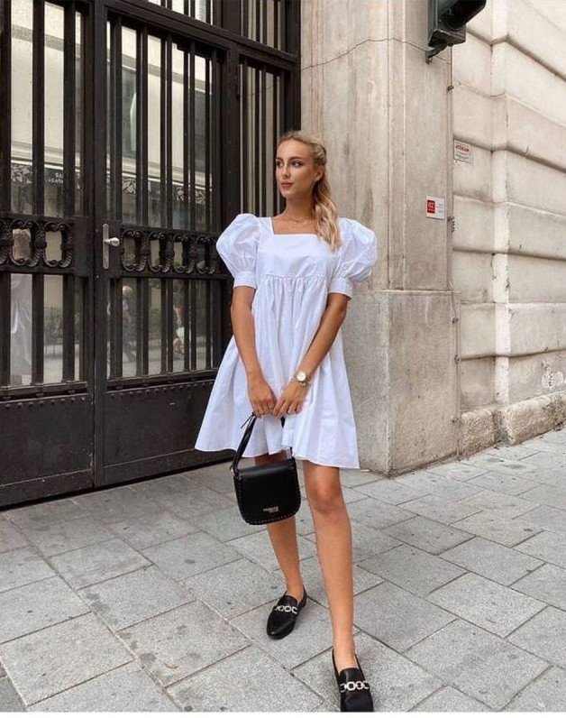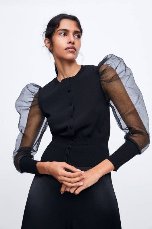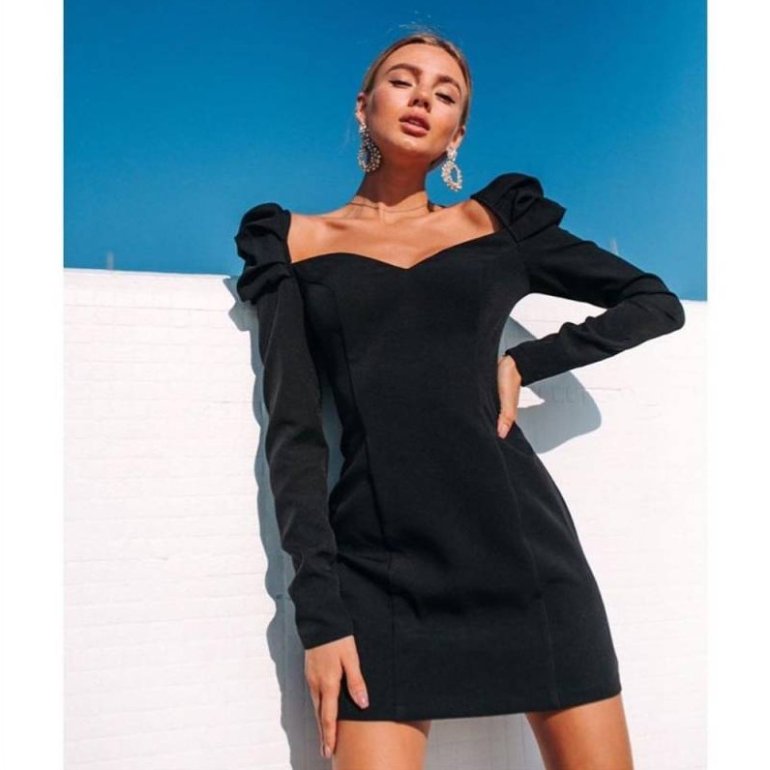 Платье guess чёрное с пышноватыми рукавами 2020.