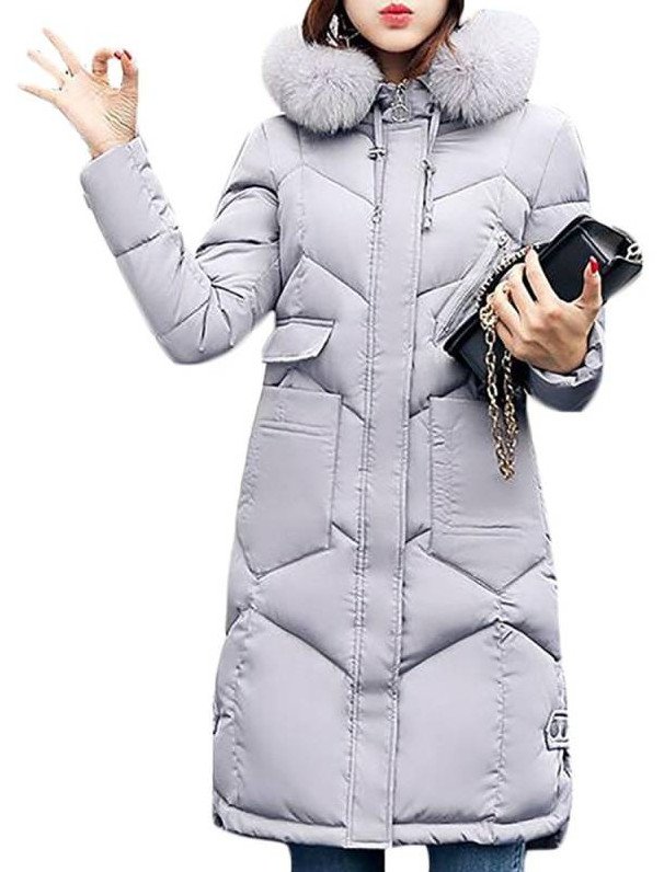Пуховик дамский зимний сероватый.