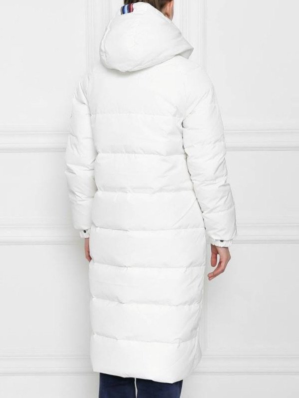 Белоснежный длиннющий пуховик дамский.