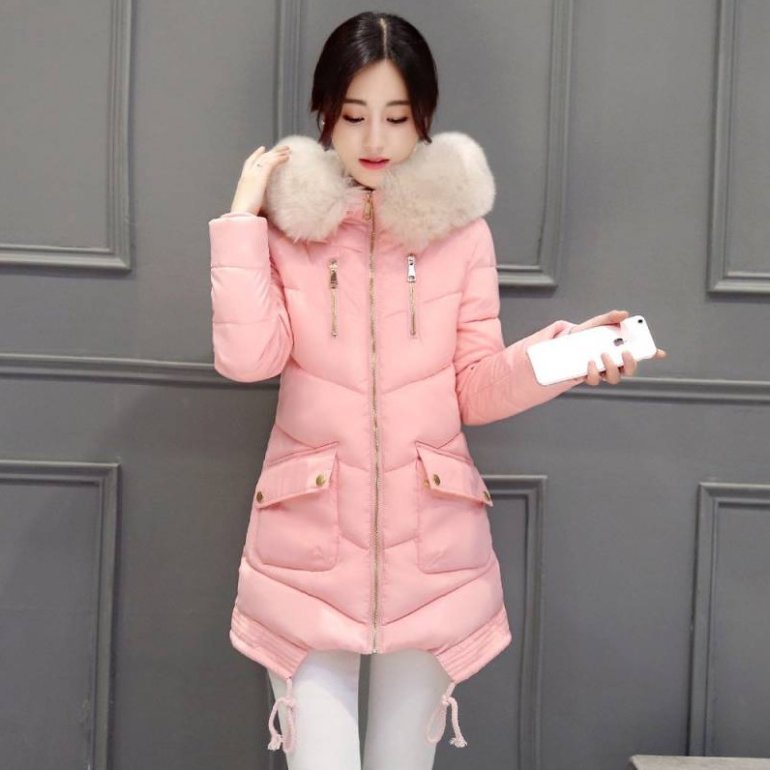 Розовый пуховик.