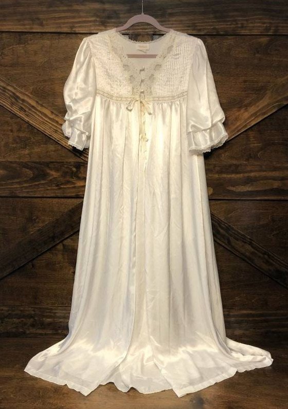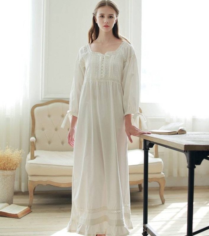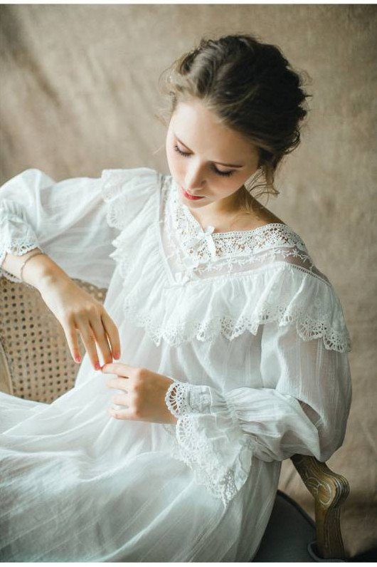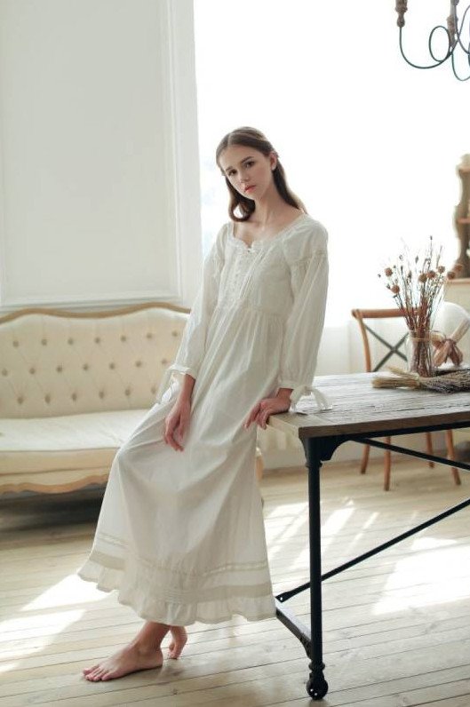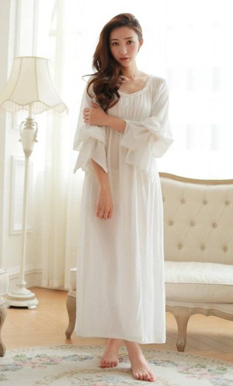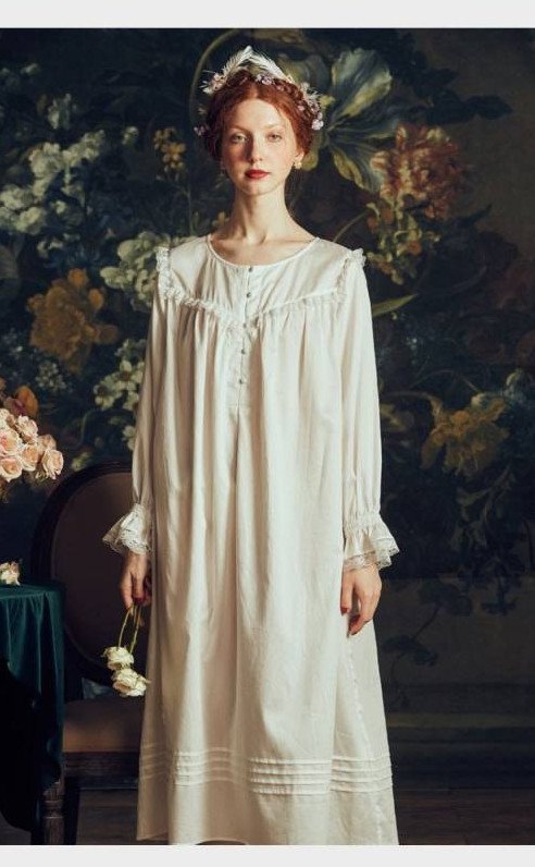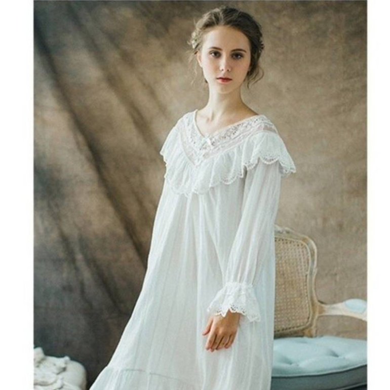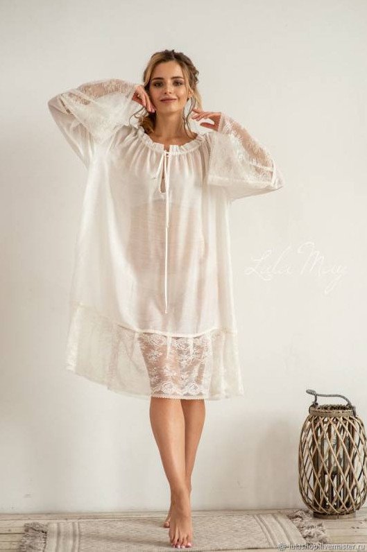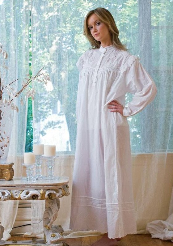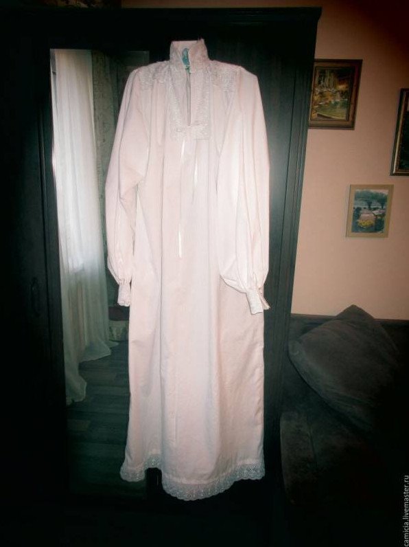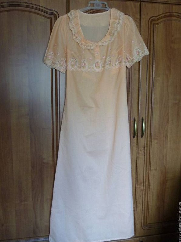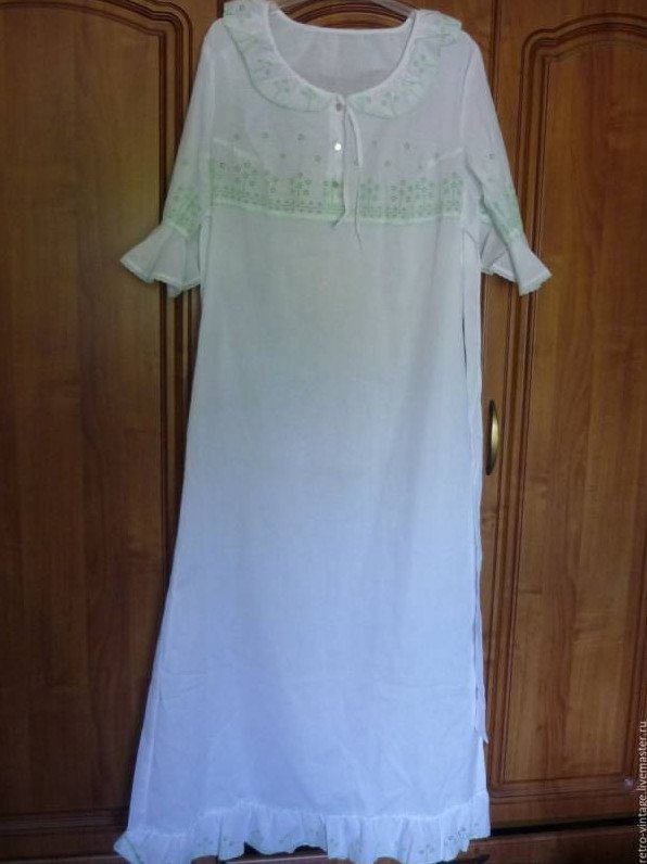 Винтажная ночная сорочка в пол с длинноватым рукавом.