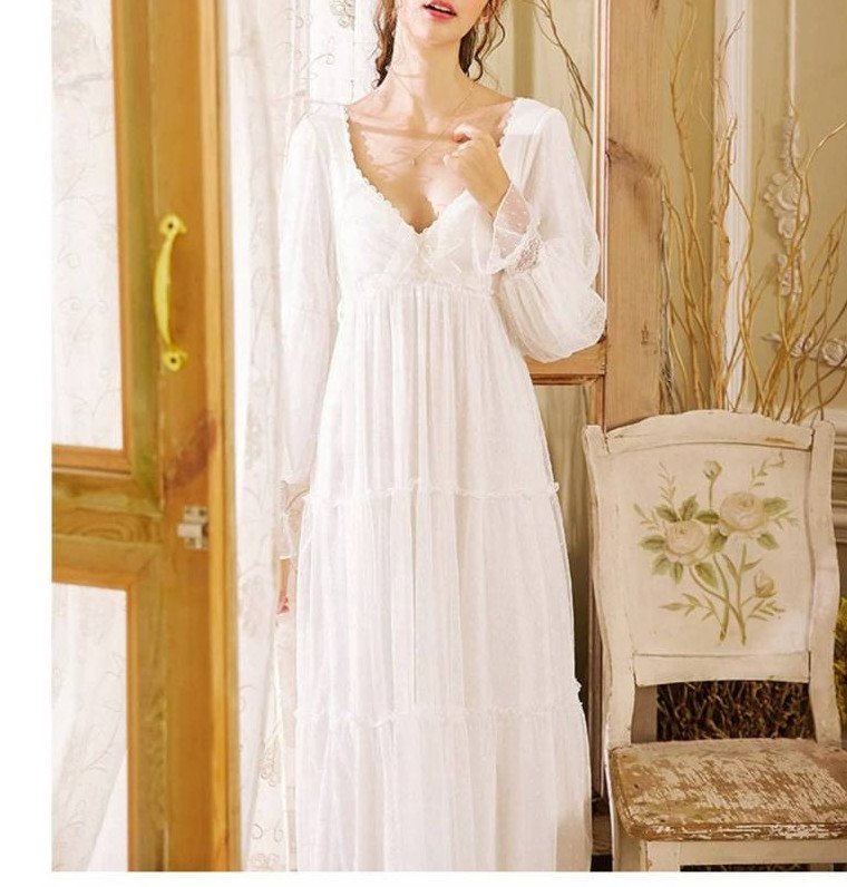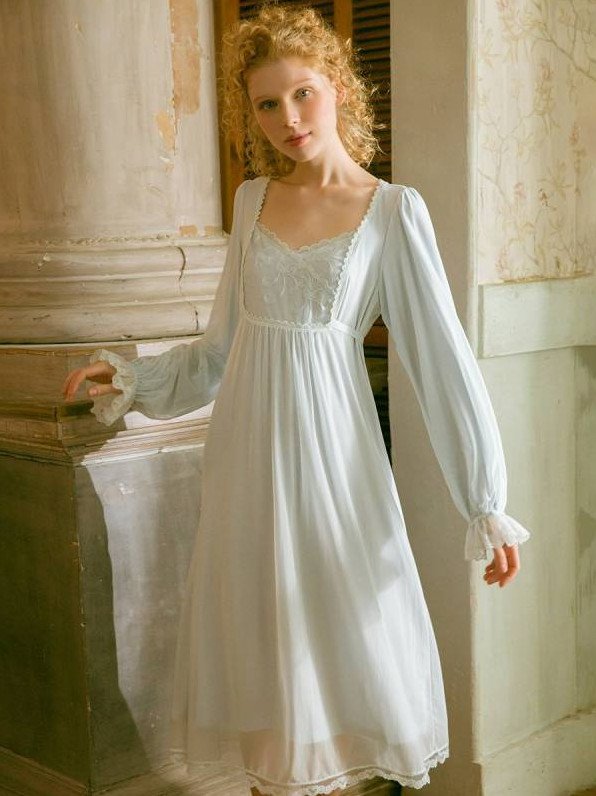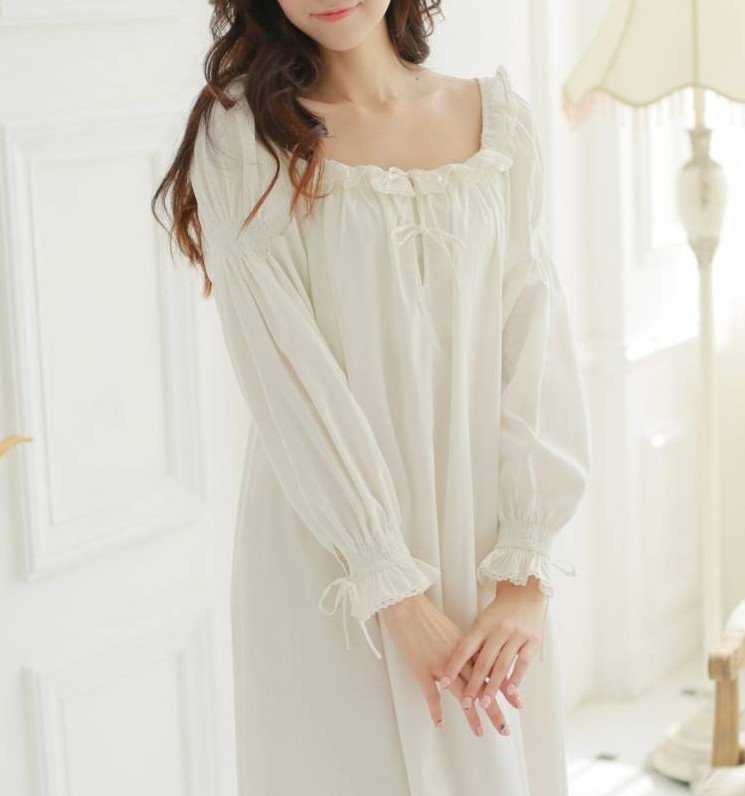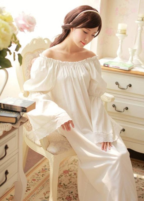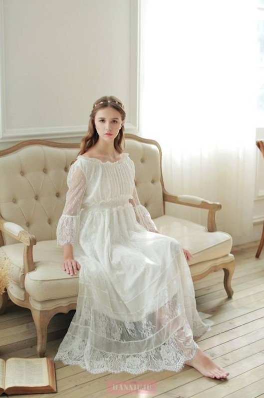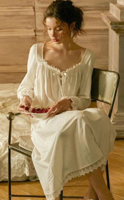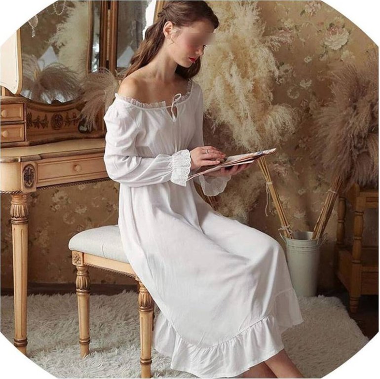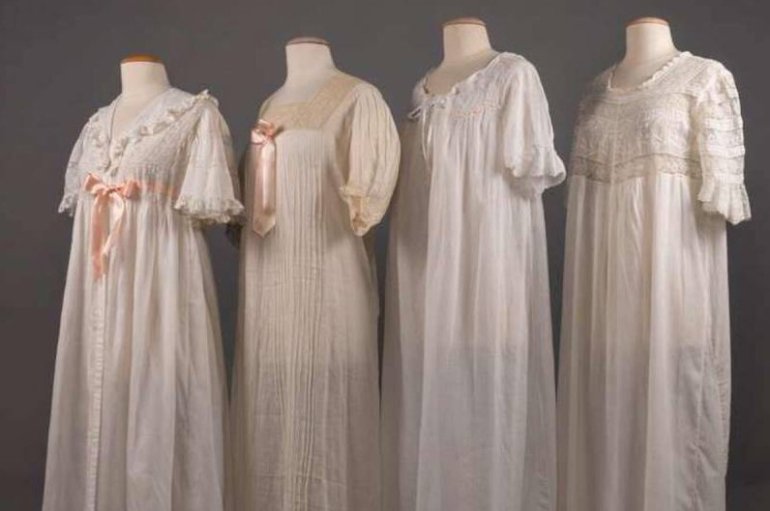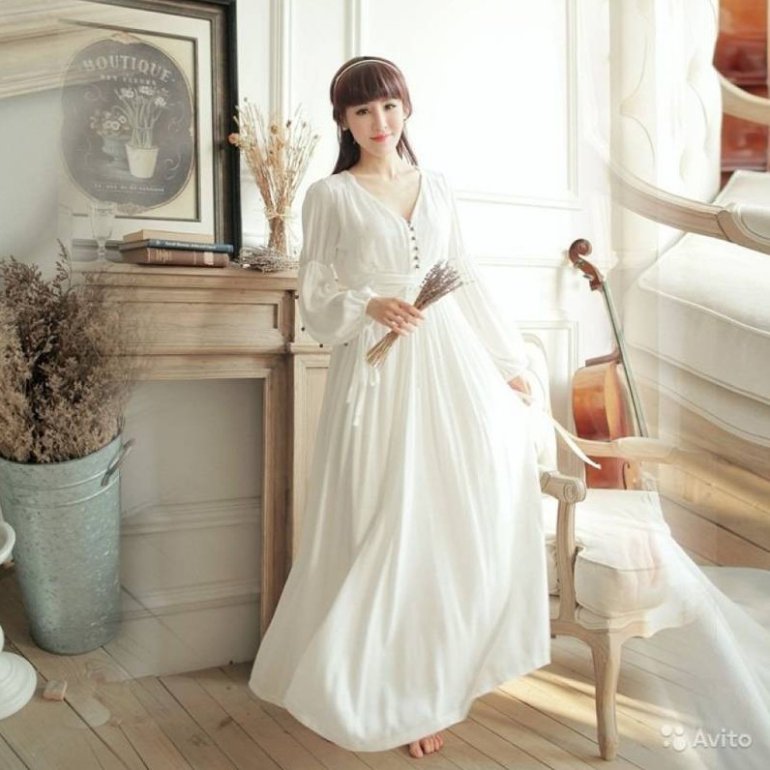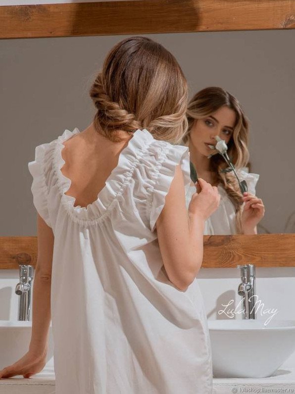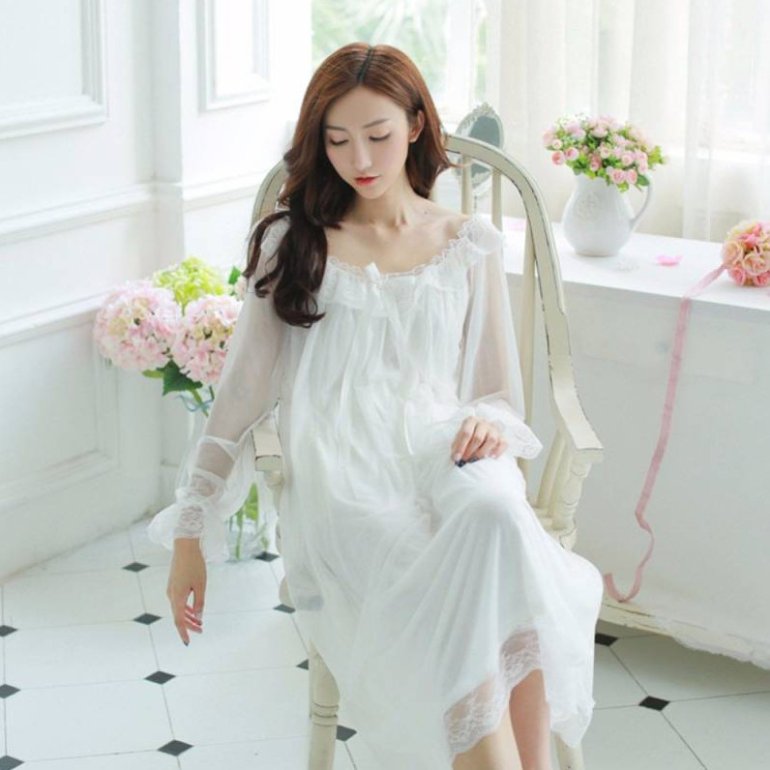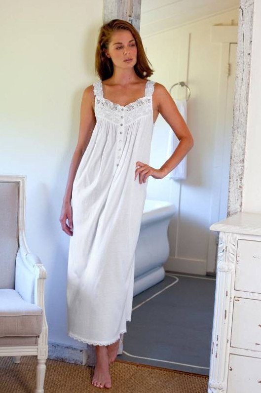 Винтажная ночная сорочка в пол с длинноватым рукавом.