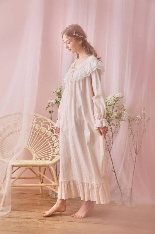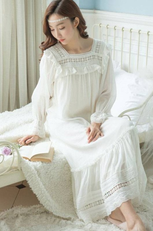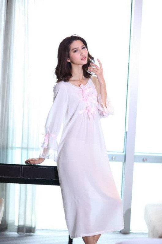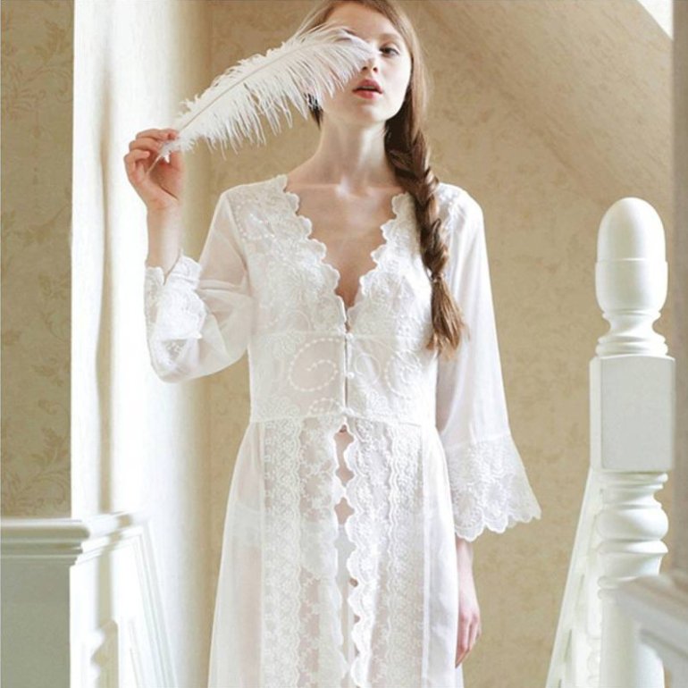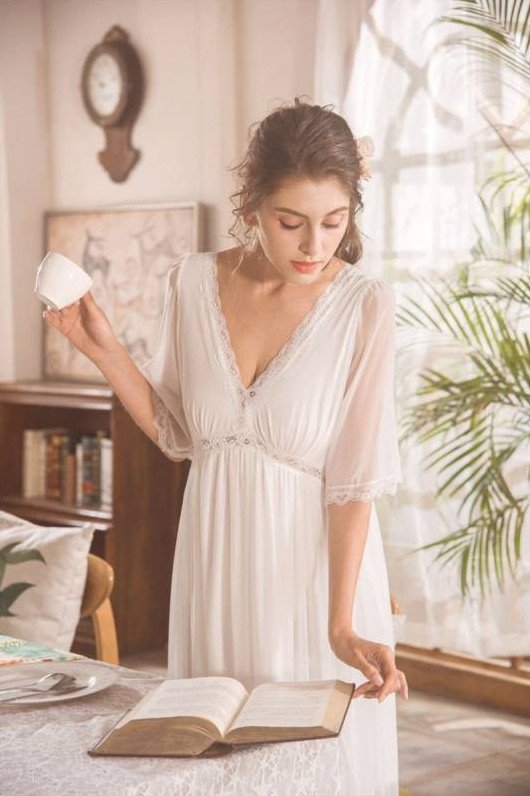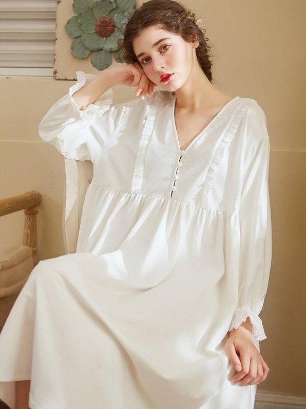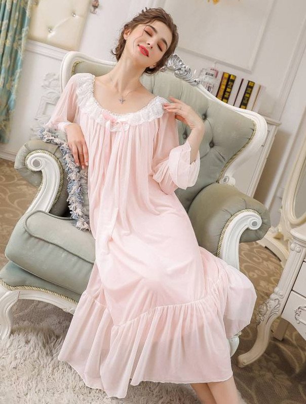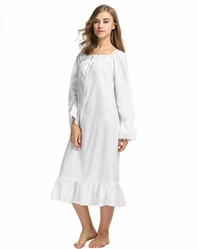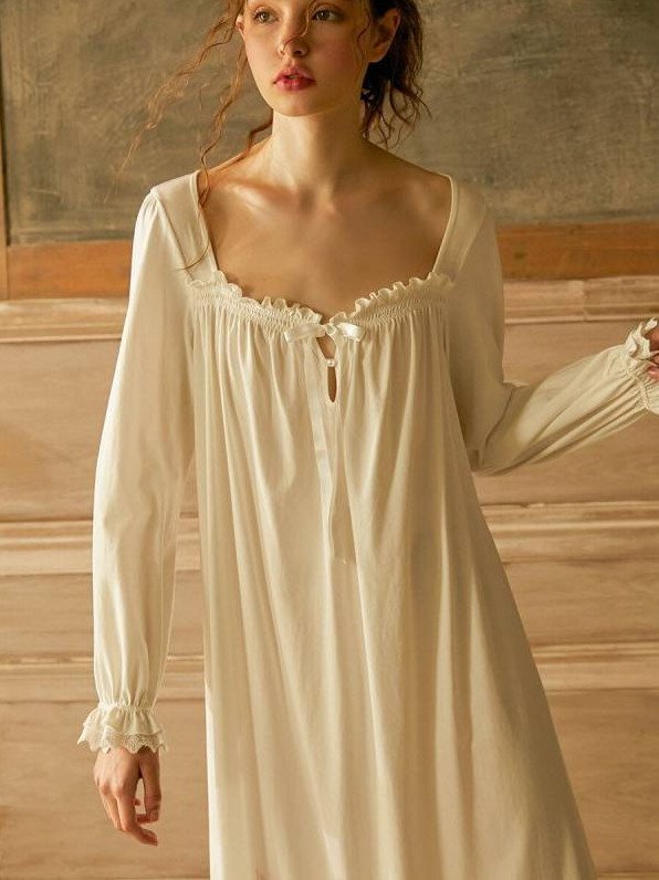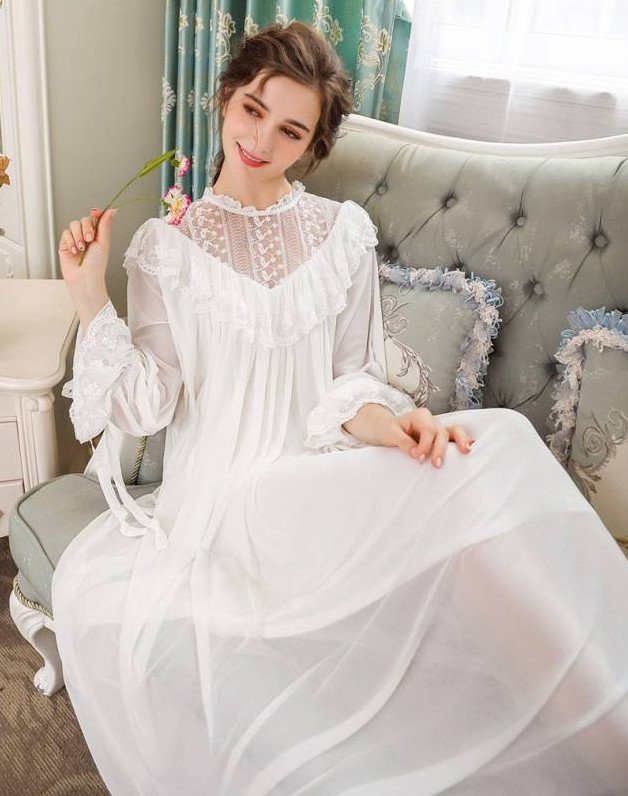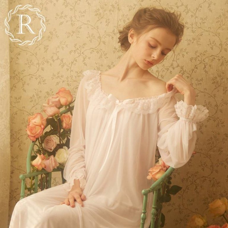 Винтажная ночная сорочка в пол с длинноватым рукавом.