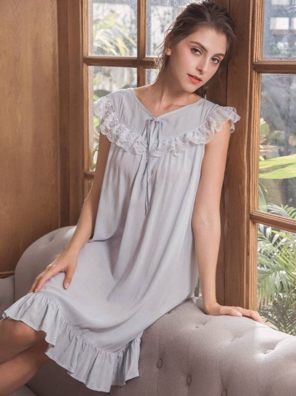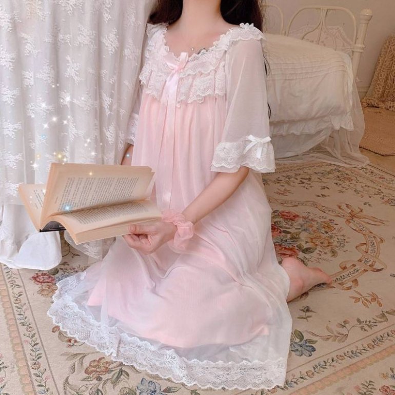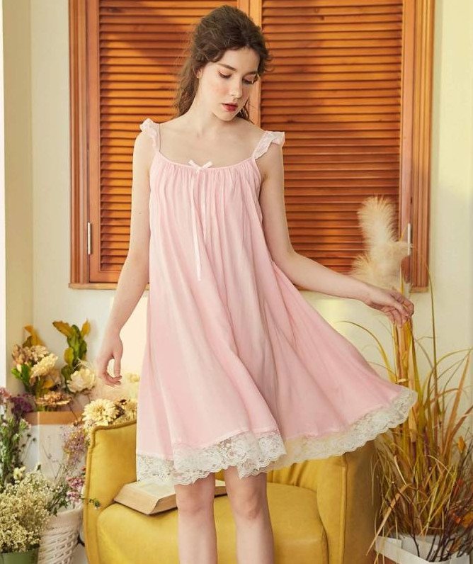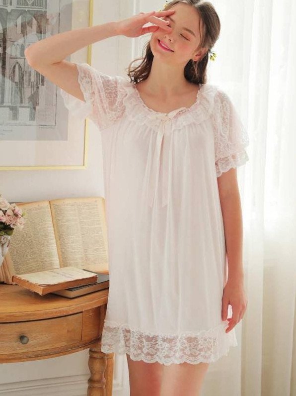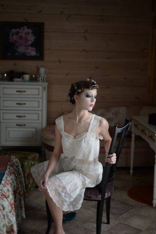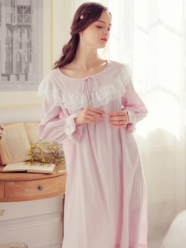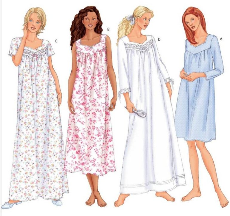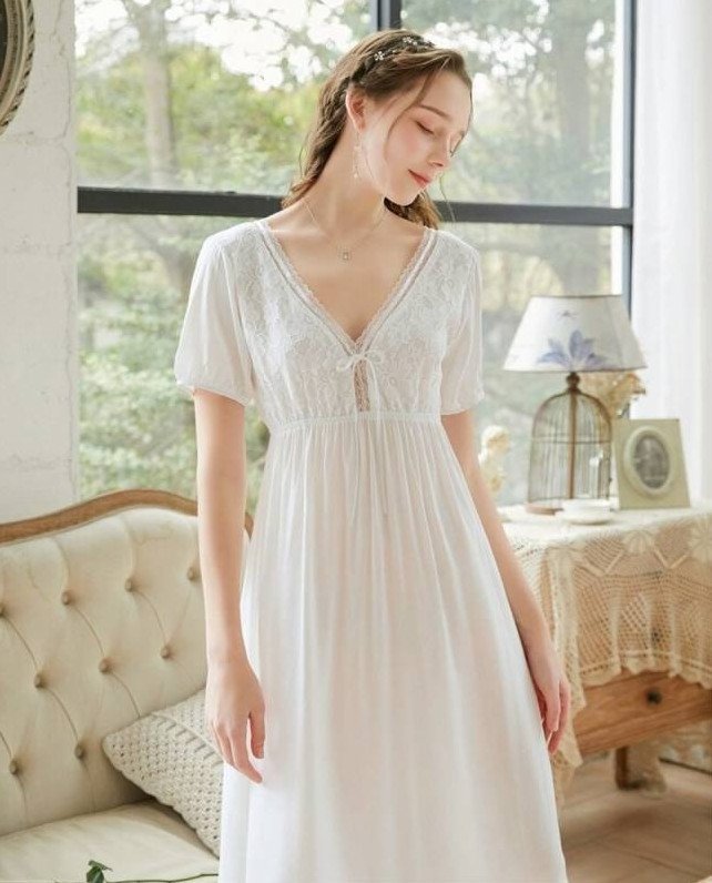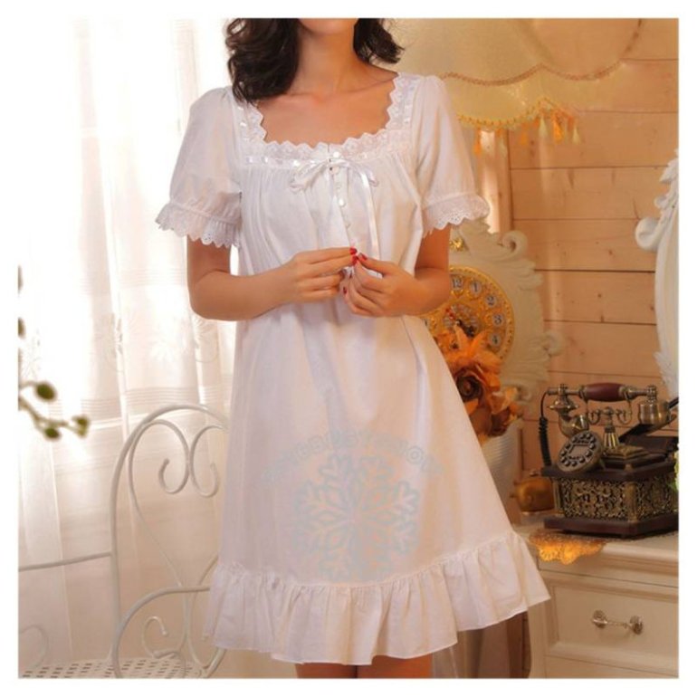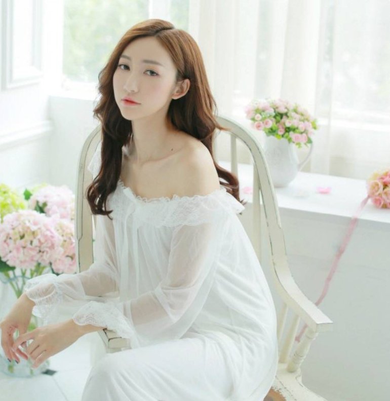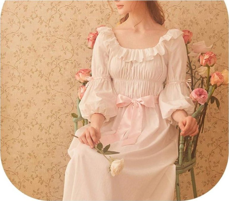 Винтажная ночная сорочка в пол с длинноватым рукавом.