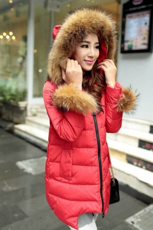 Очень красный пуховик дамский.