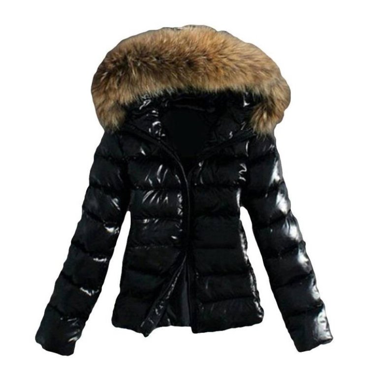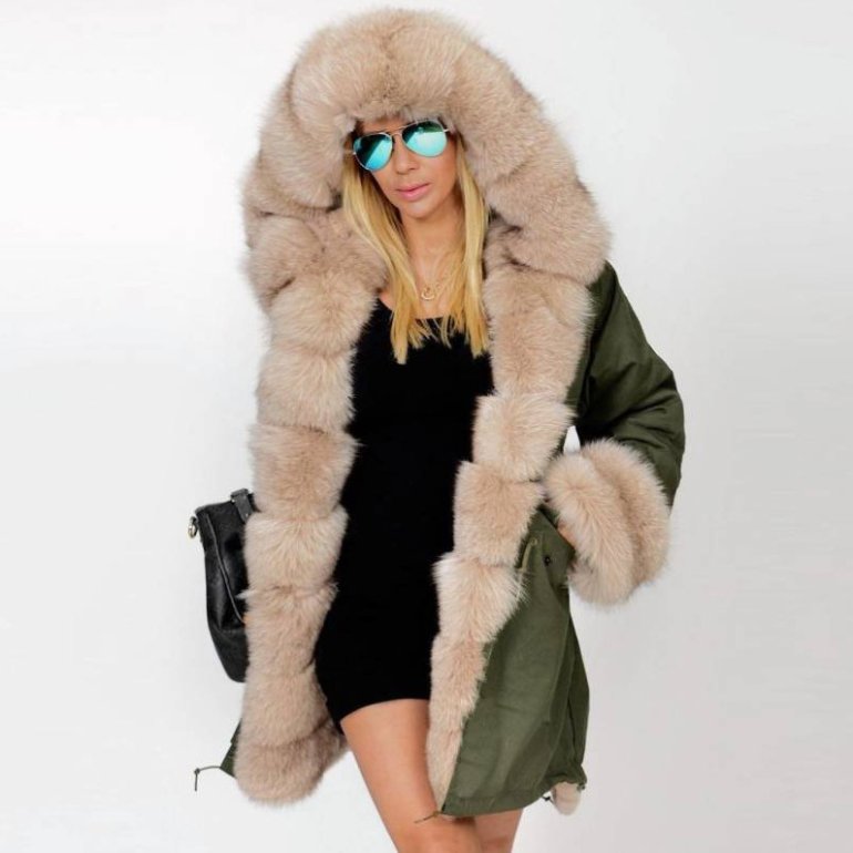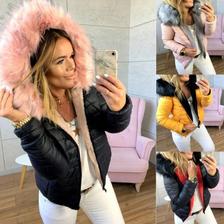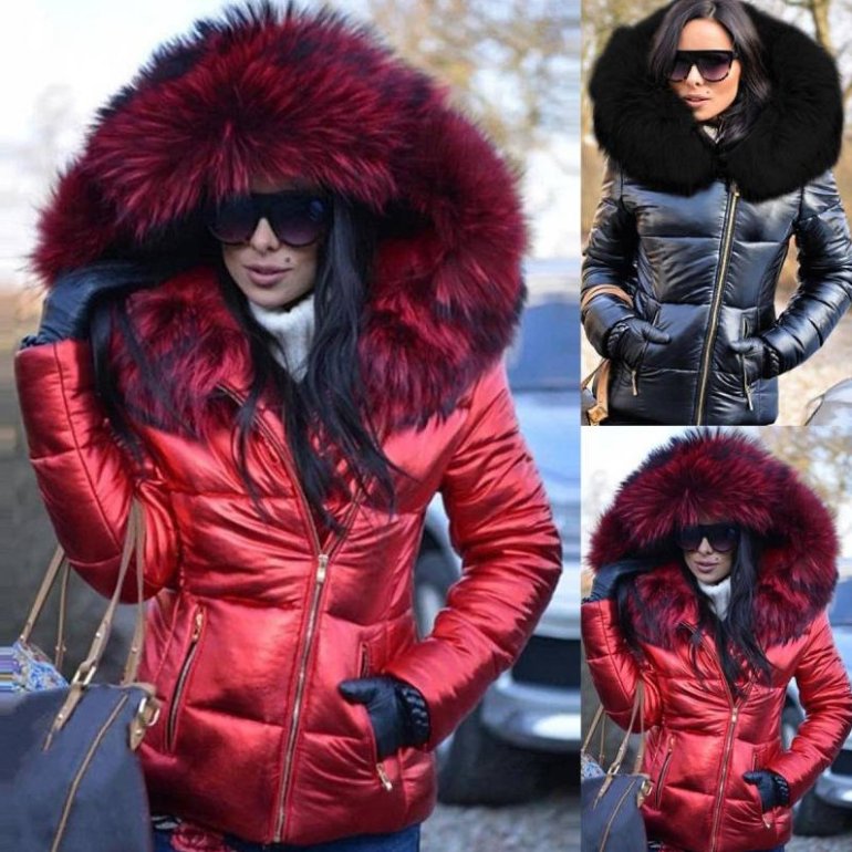 Куртка с меховым капюшоном женская.