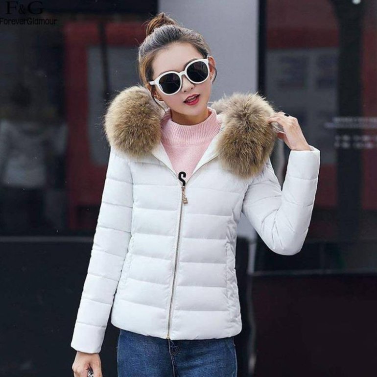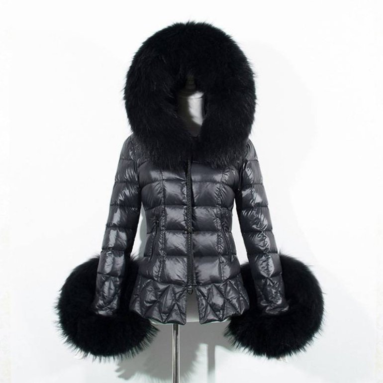 Дамские пуховики недлинные с мехом.
