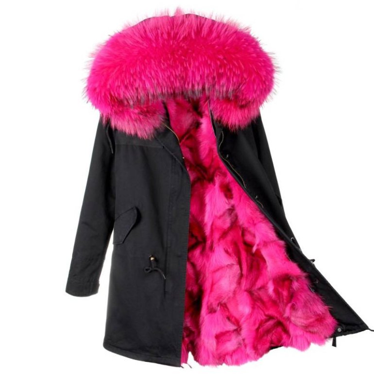 Парка женская с розовым мехом.