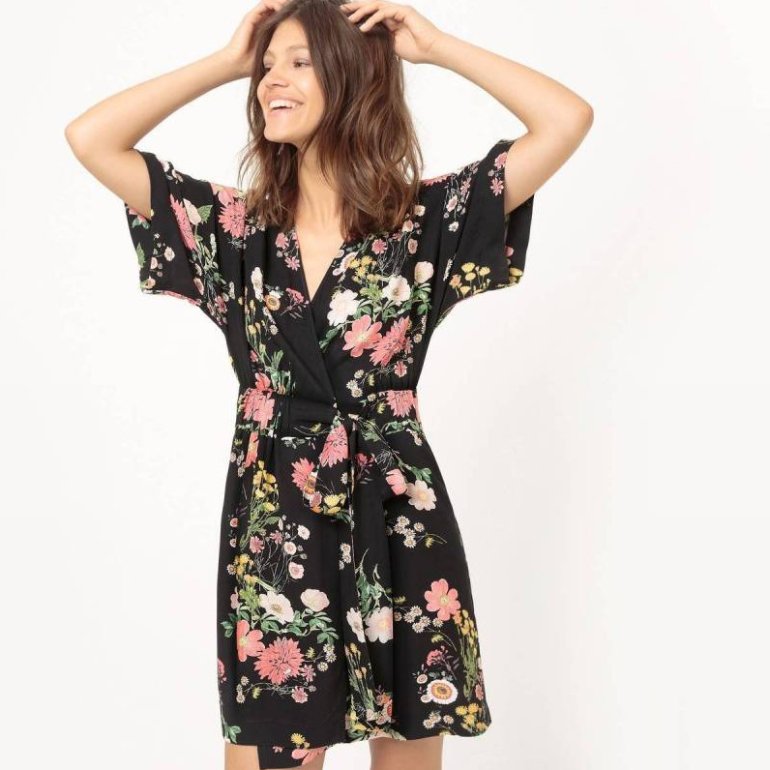 Штапельное платье в стиле кимоно.