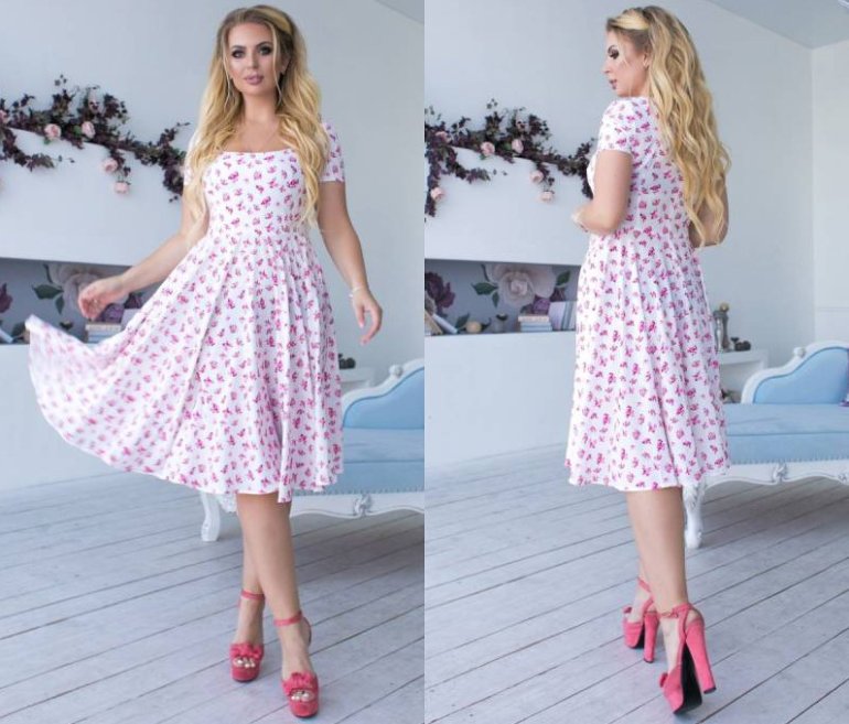 Платье в маленький цветочек для полных.