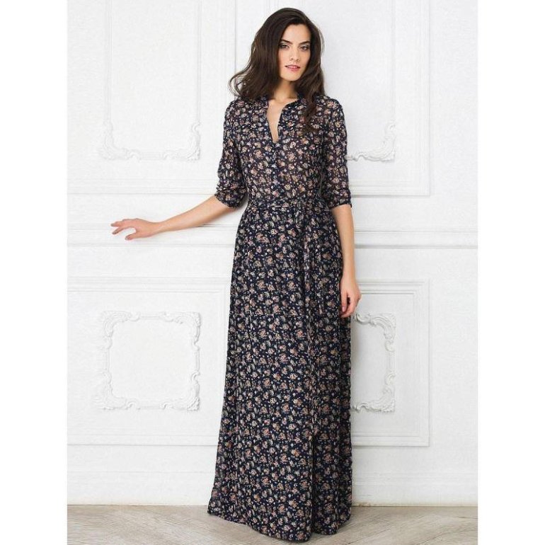 Длинноватое платье в маленький цветочек.