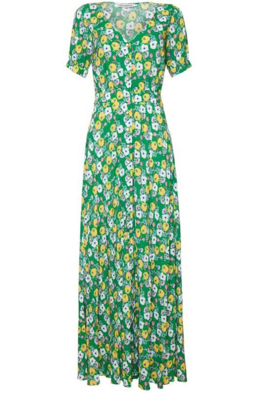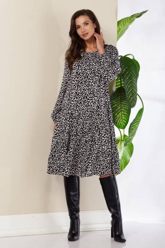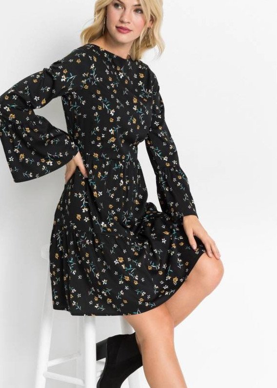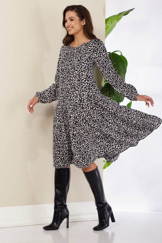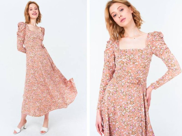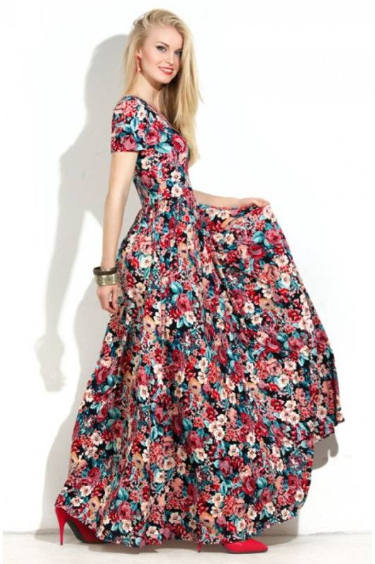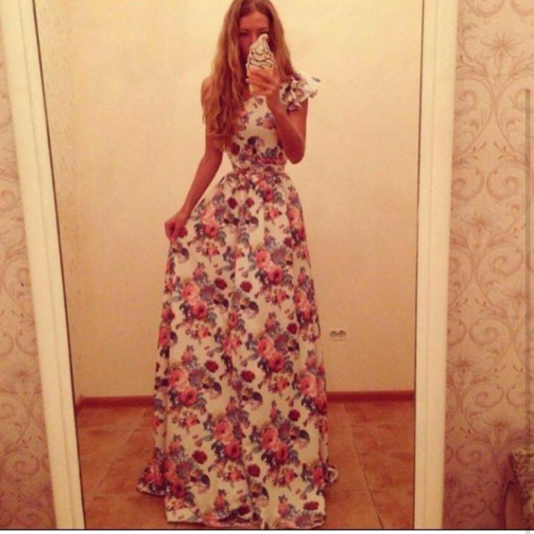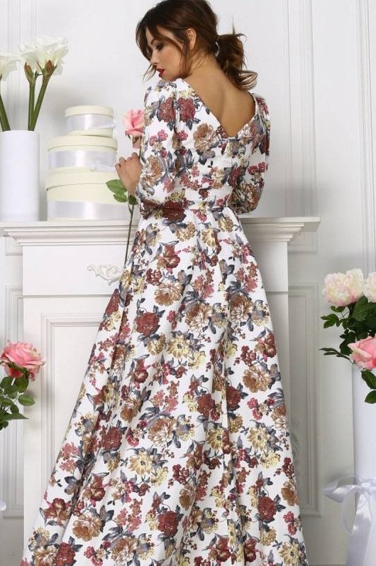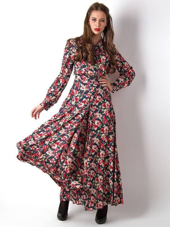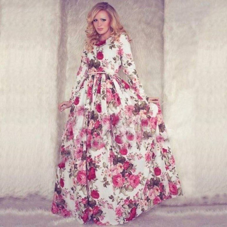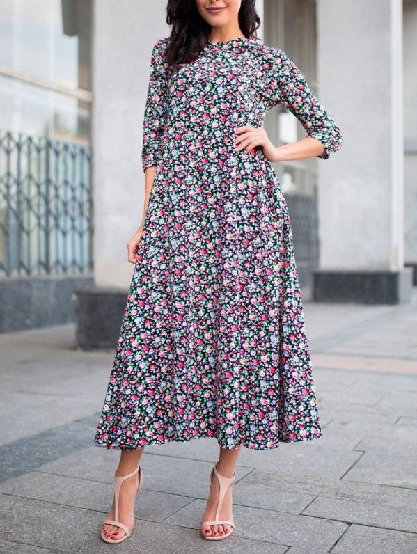 Длинноватое платье с цветочным принтом.