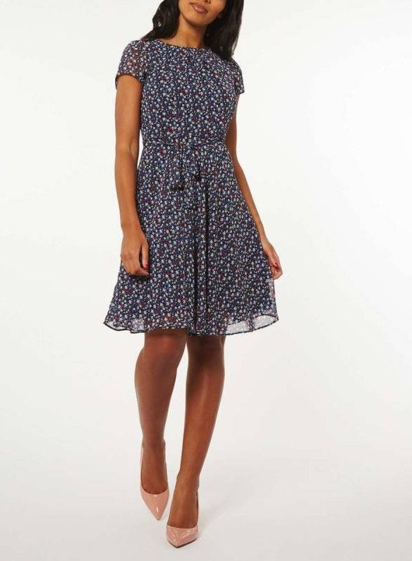 Платье с маленьким цветочным принтом.