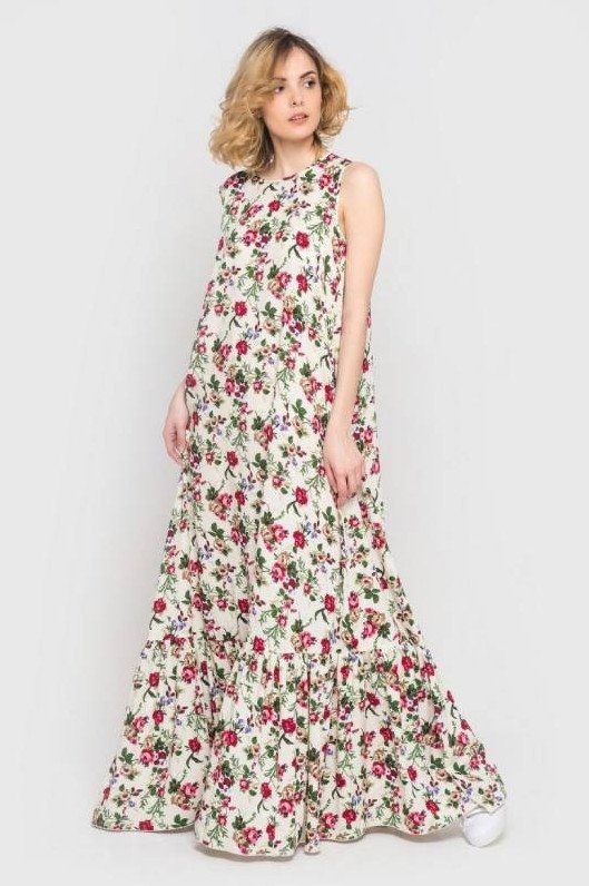 Сарафан в пол с цветочным принтом.