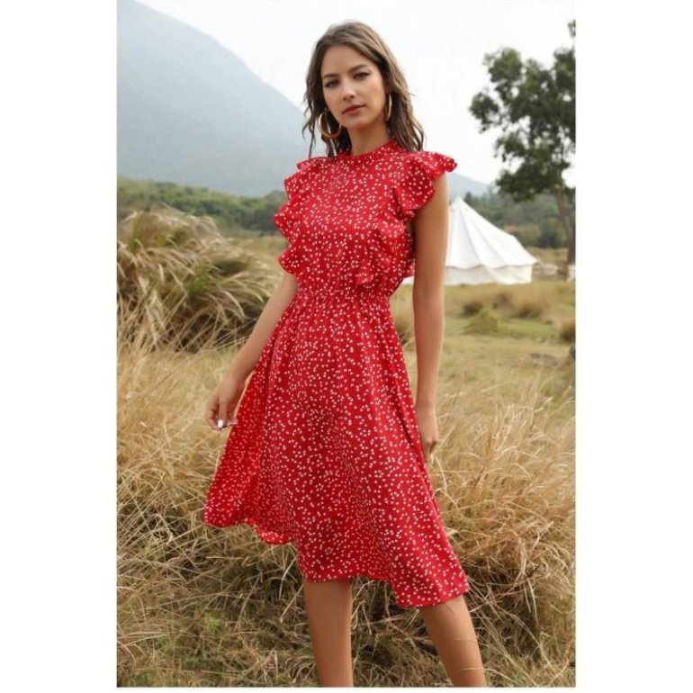 Красноватое летнее платье.