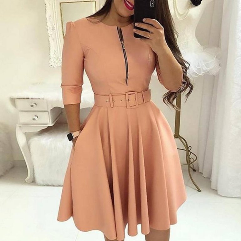 Пудровое платье трапеция.