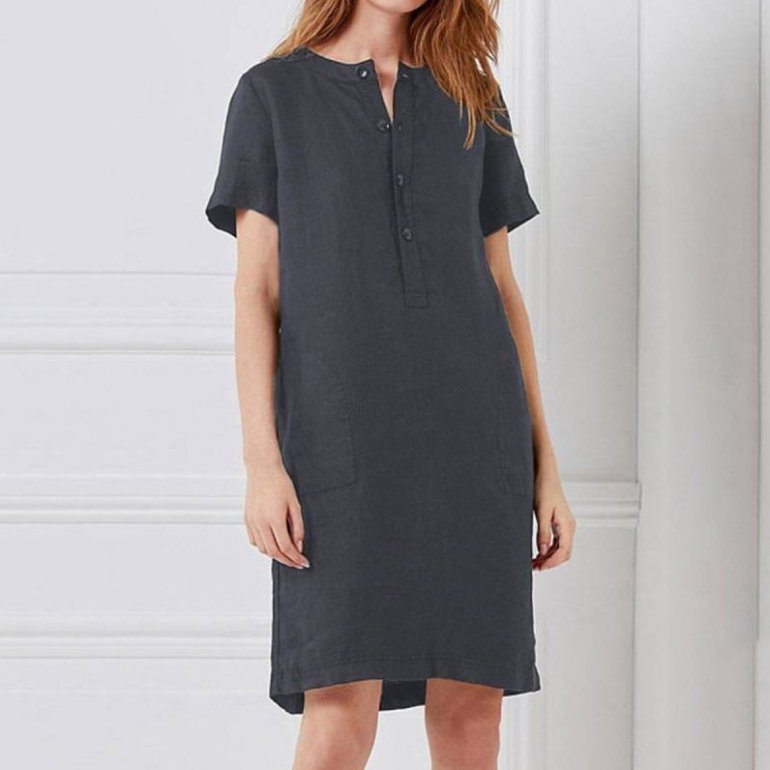 Платье на пуговицах впереди.