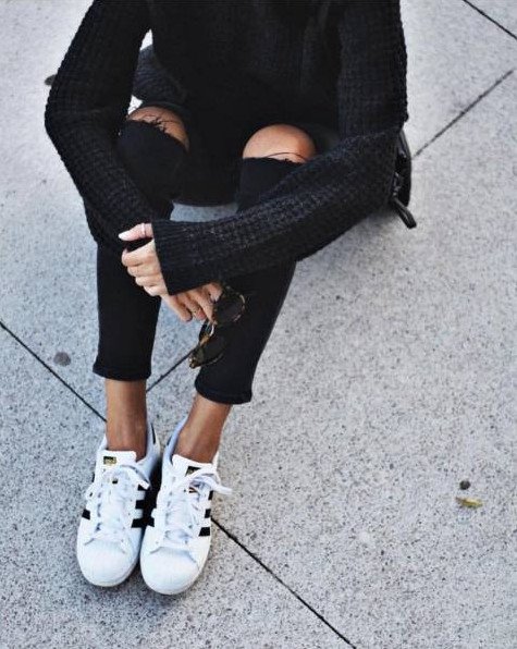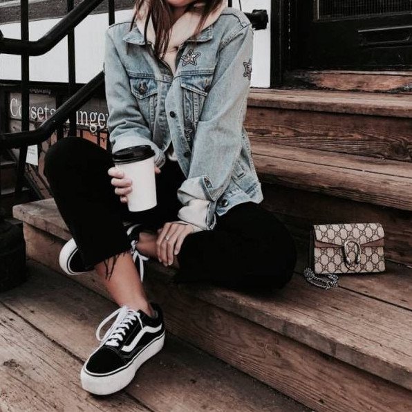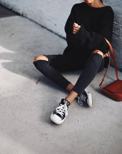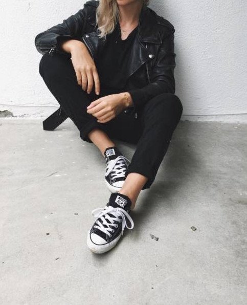 Конверсы и черные джинсы.