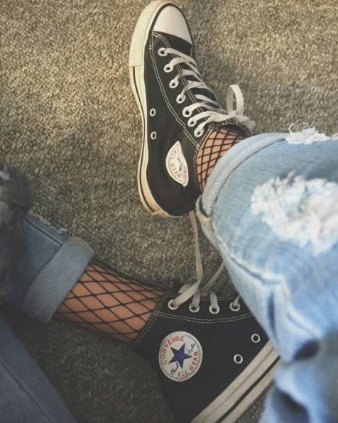 Колготки в сетку с кедами.