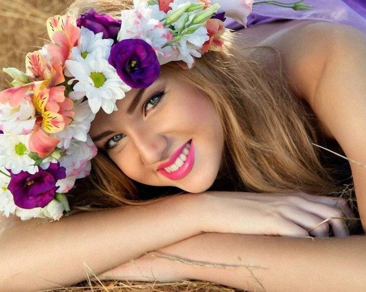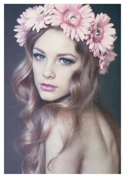 Девушка с венком на голове.