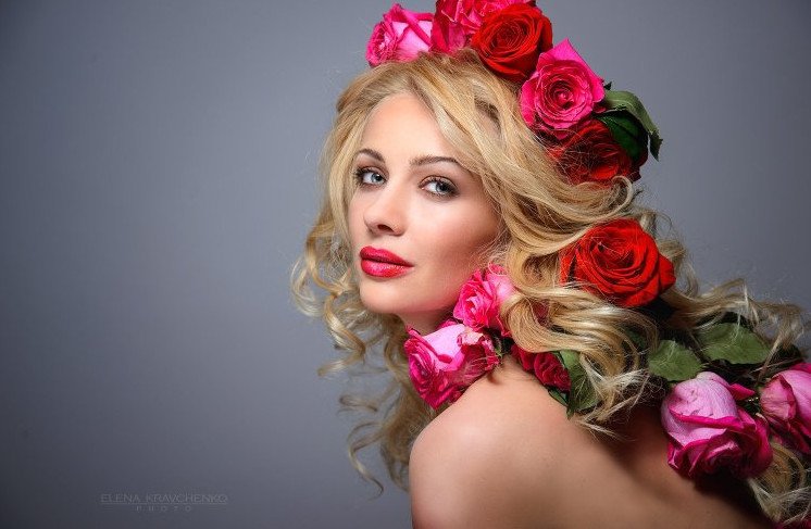 Девушка в цветах студия.