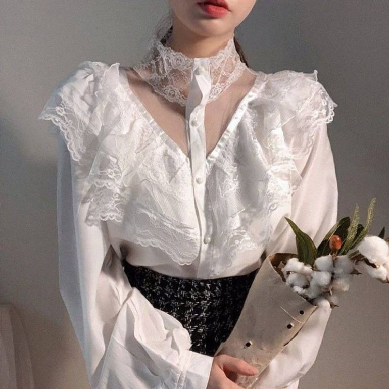 Белоснежная блузка с кружевом.