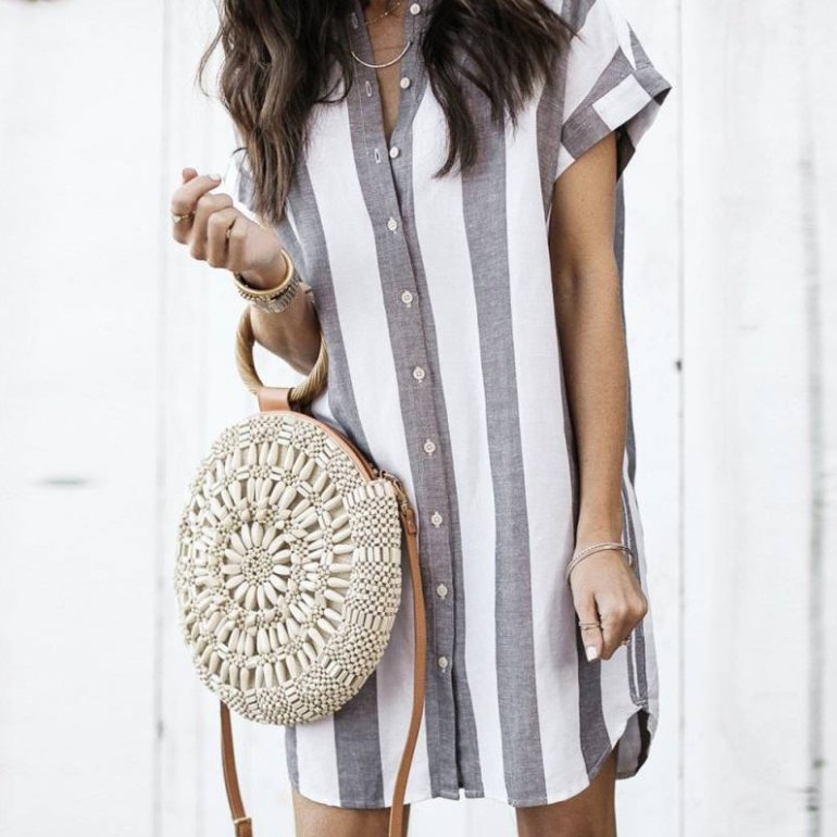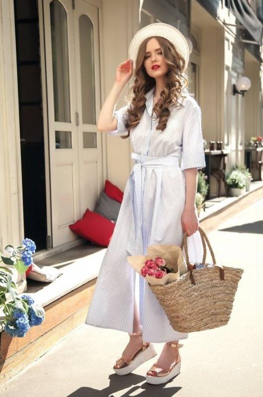 Платье рубаха в полоску.