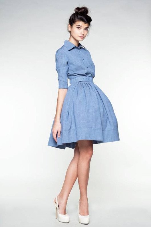 Джинсовое платье-рубашка светлое.